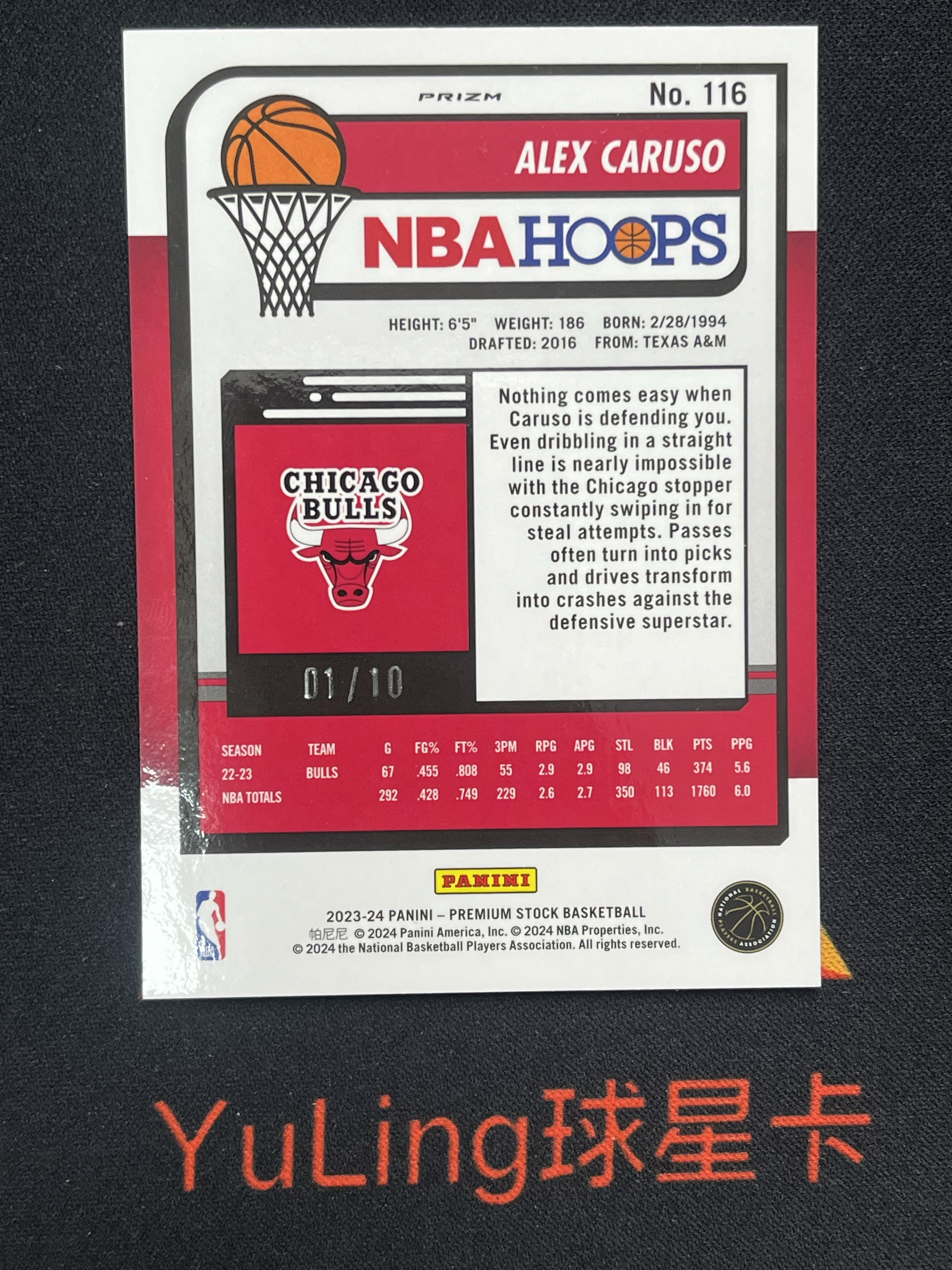 2023-24 Panini NBA Hoops Premium Stock Alex Caruso 卡鲁索 公牛 Premium Stock 金碎冰折 折射 01/10编 首编 超低编 瑕疵如图 康