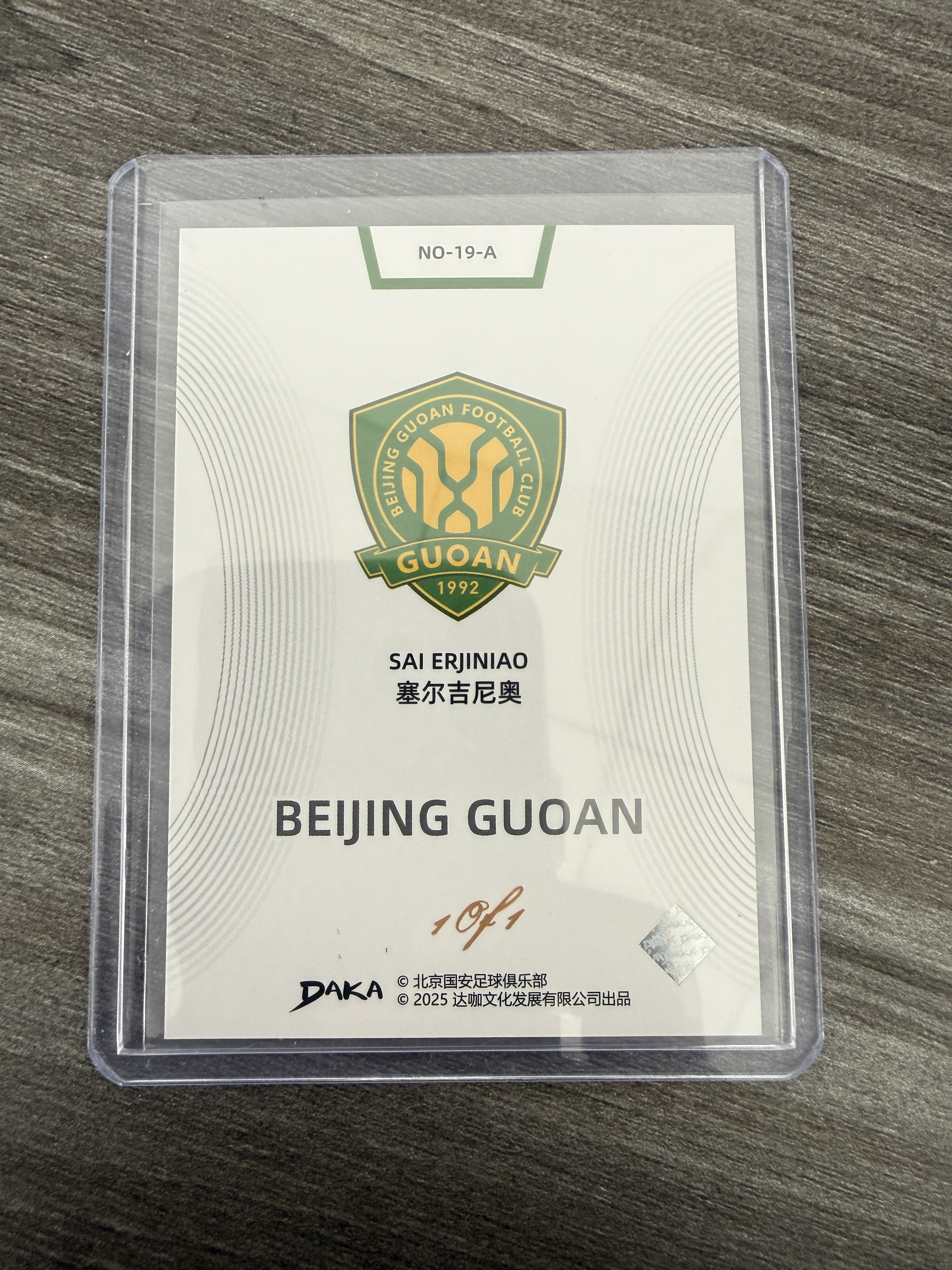 2025 DAKA 北京国安足球俱乐部 塞尔吉尼奥 国安 one of one 1编1 base 北京国安队盒 通行品相 1/1 ofo
