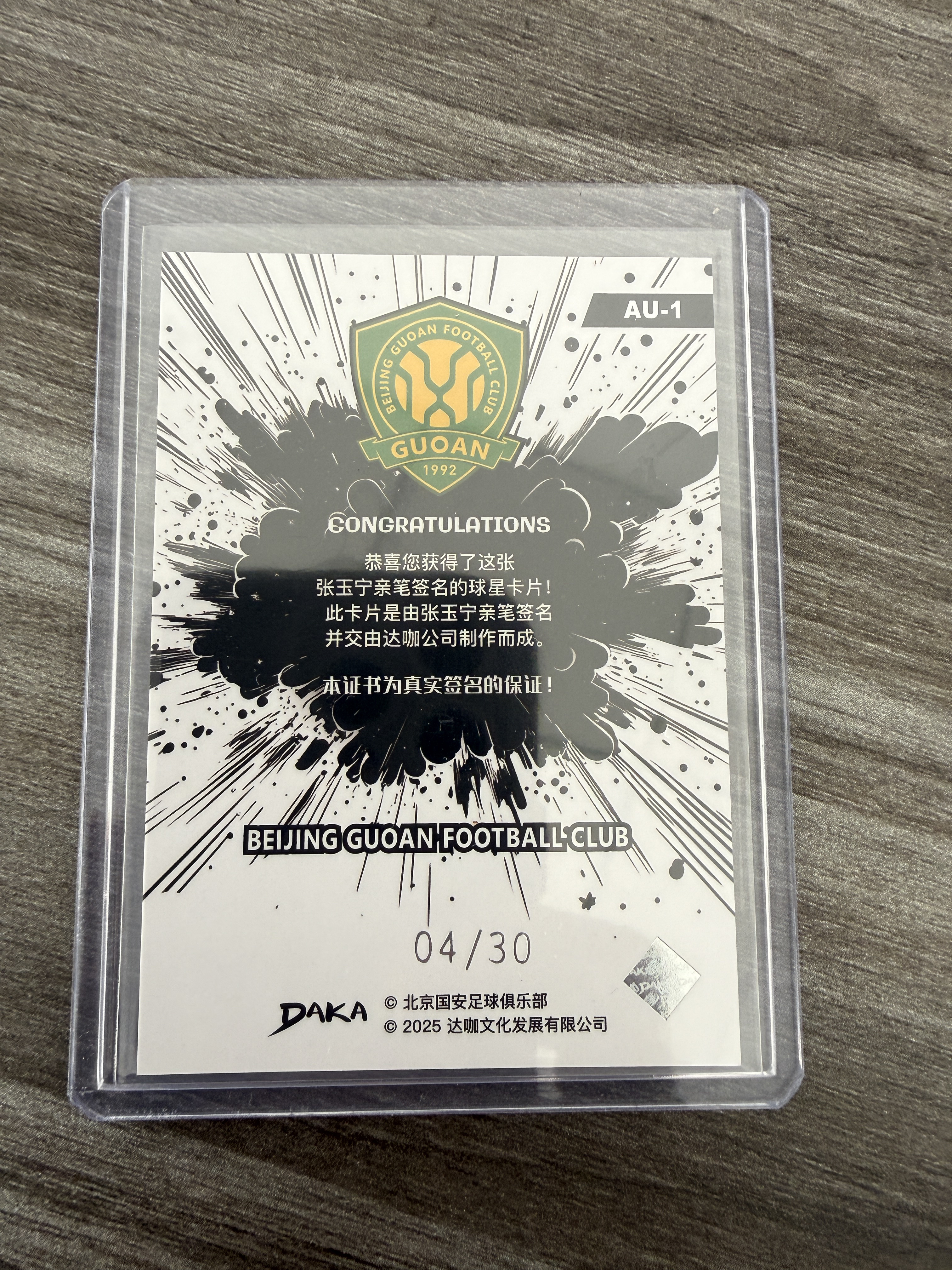 2025 DAKA 北京国安足球俱乐部 国安 张玉宁 04/30编 签字 卡签 北京国安队盒 达咖