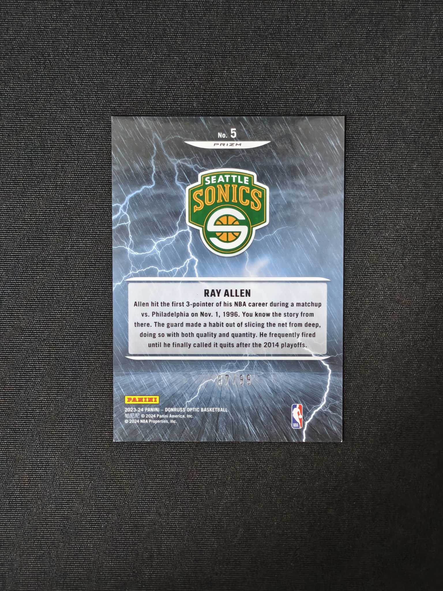 《拍多少回款多少》2023-24 Panini Donruss Optic Ray Allen 杜蕾斯 雷阿伦 雷 阿伦 三分王 热火 超音速 Raining 3s 三分雨特卡 红折 99编 大比例