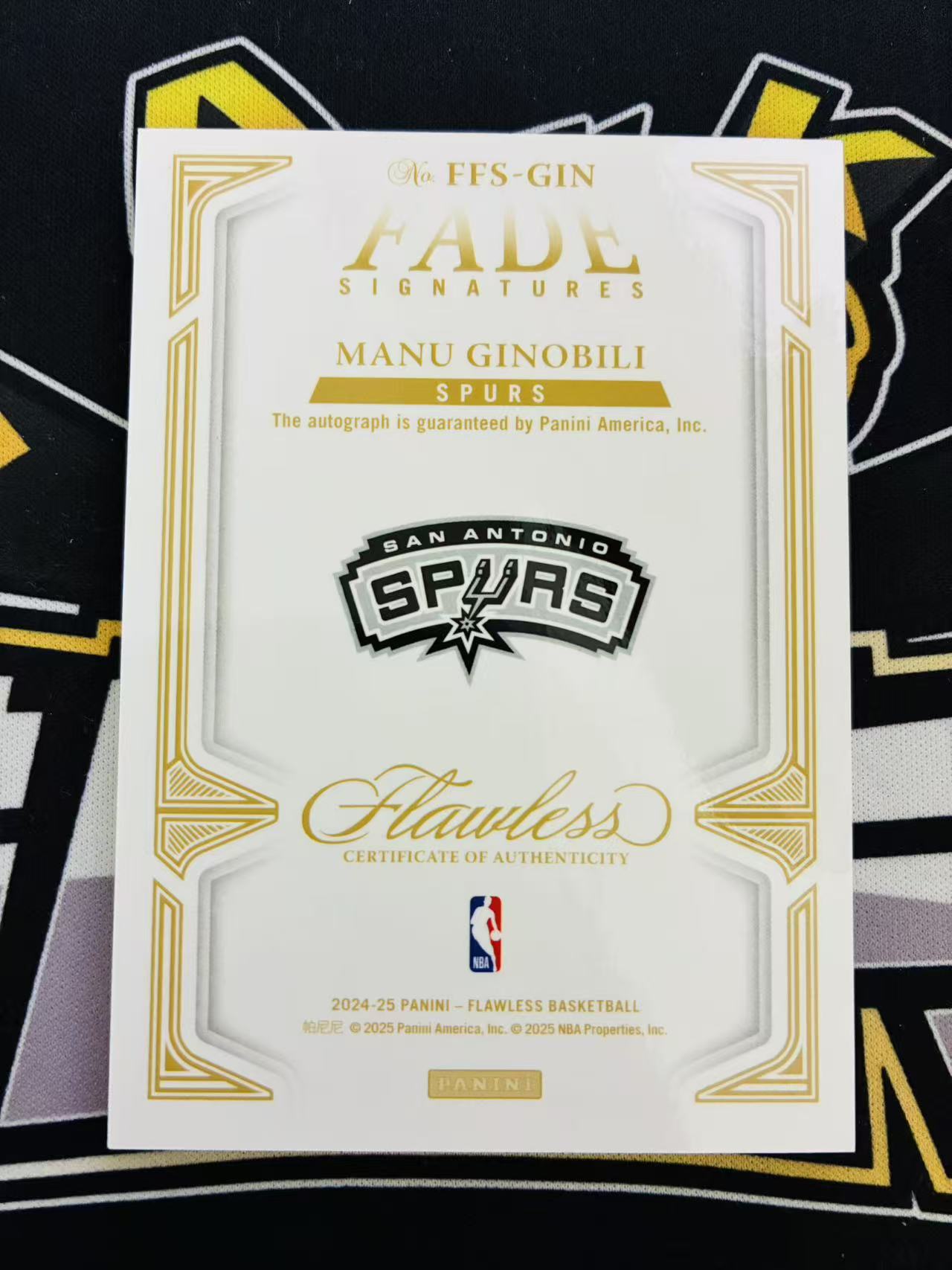 【扒卡拍卖 拍前请看描述】2024-25 Panini Flawless Manu Ginobili 吉诺比利 阿根廷妖刀 14/25编 签字 卡签 马刺传奇 秃子 GDP组合 传奇名宿 收藏凑套必备!无敌大炮1127BK02