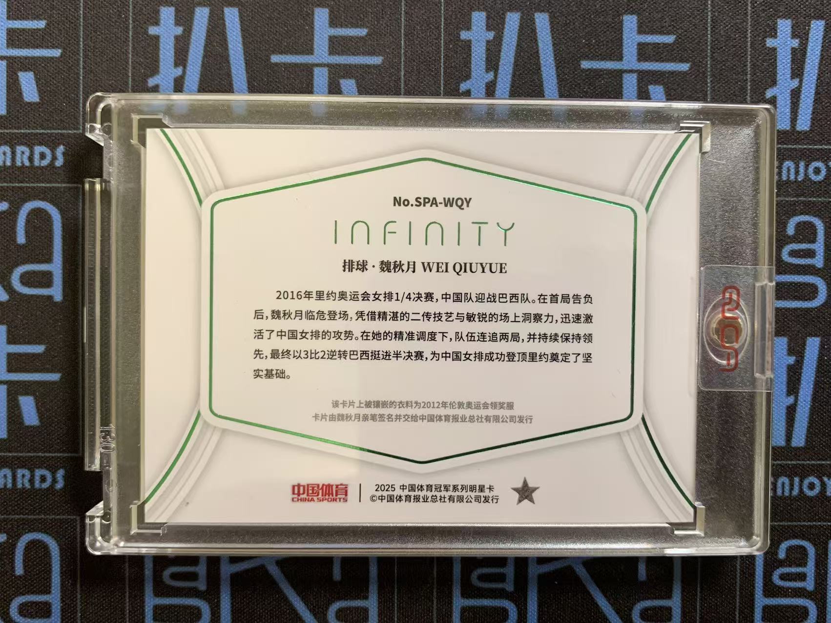 【扒卡拍卖】2025 中国体育 infinity 排球 女排 魏秋月 5/5编 尾编 绿平行 star patch 球衣 领奖服 签字 原封砖GZY1129BK34拍前请读描述