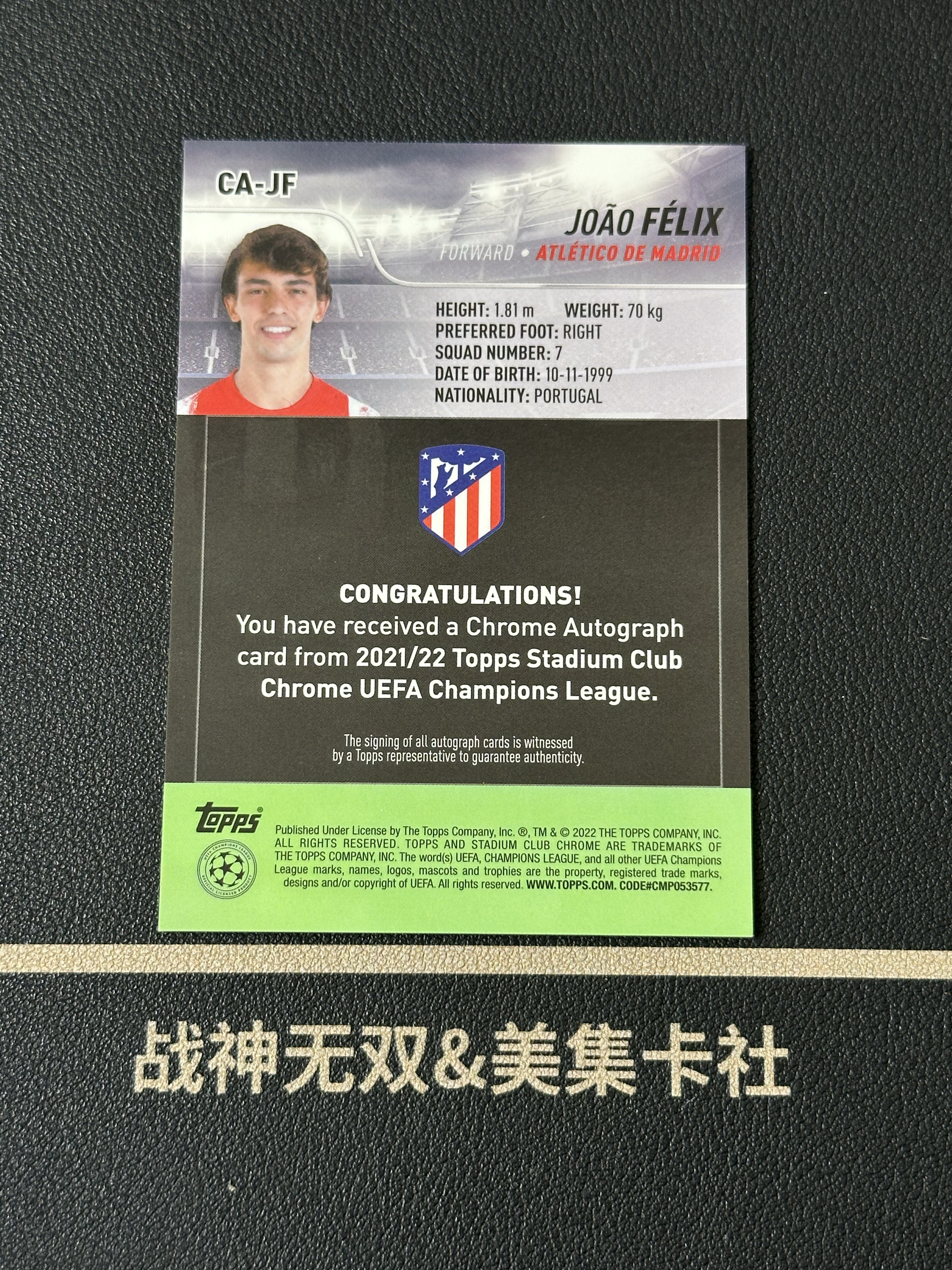 2022 Topps Stadium Club Chrome Joao Felix 若昂 菲利克斯 马德里竞技 竞技场 签字 巴萨 巴塞罗那 欧冠 战神无双(北凉)