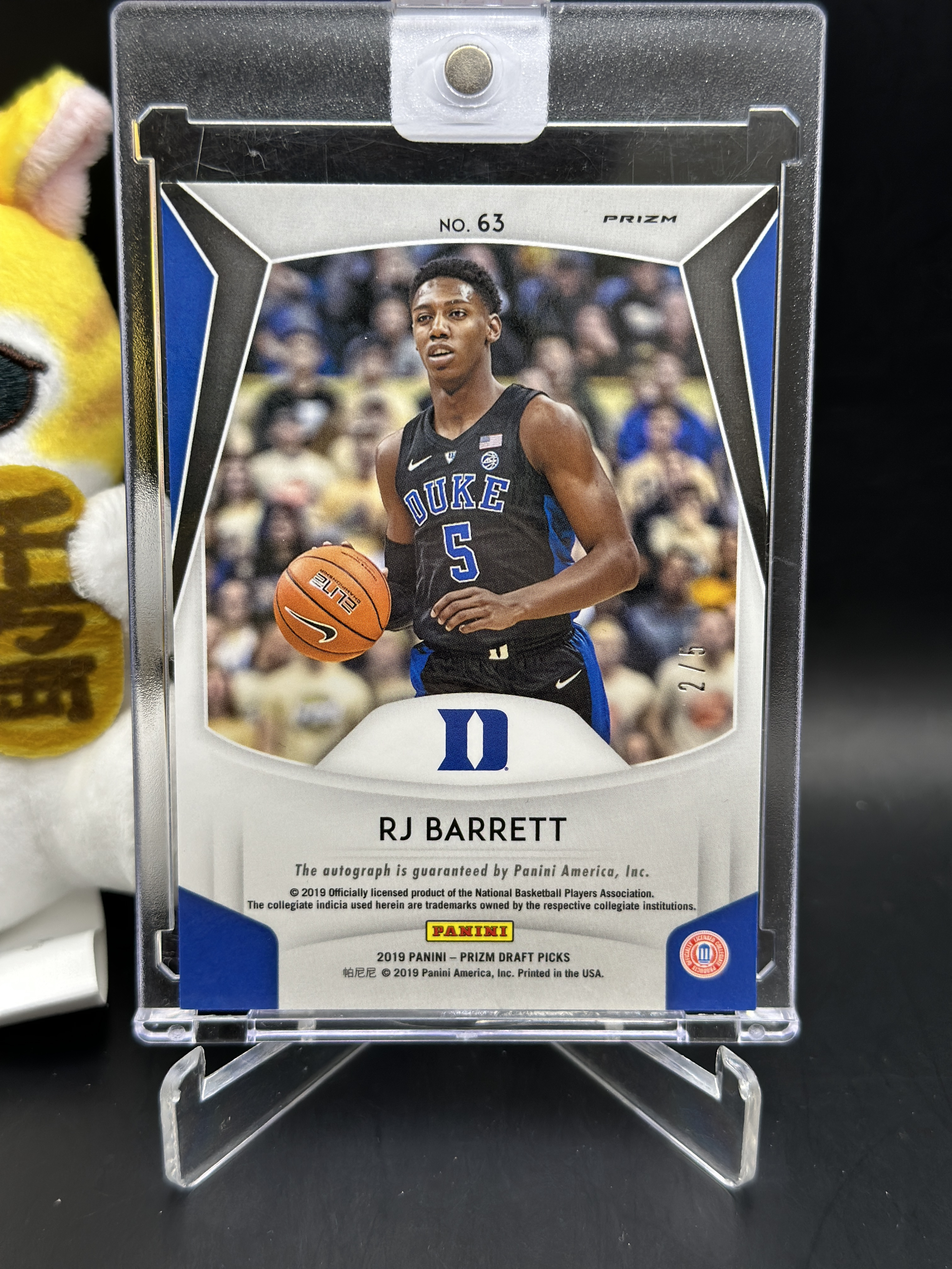 2019 Panini Prizm R.J. Barrett RC 猛龙 RJ巴雷特大狙 PZ 2/5编 超低编 背号编 RA 新秀签字 爆金折射 贴签