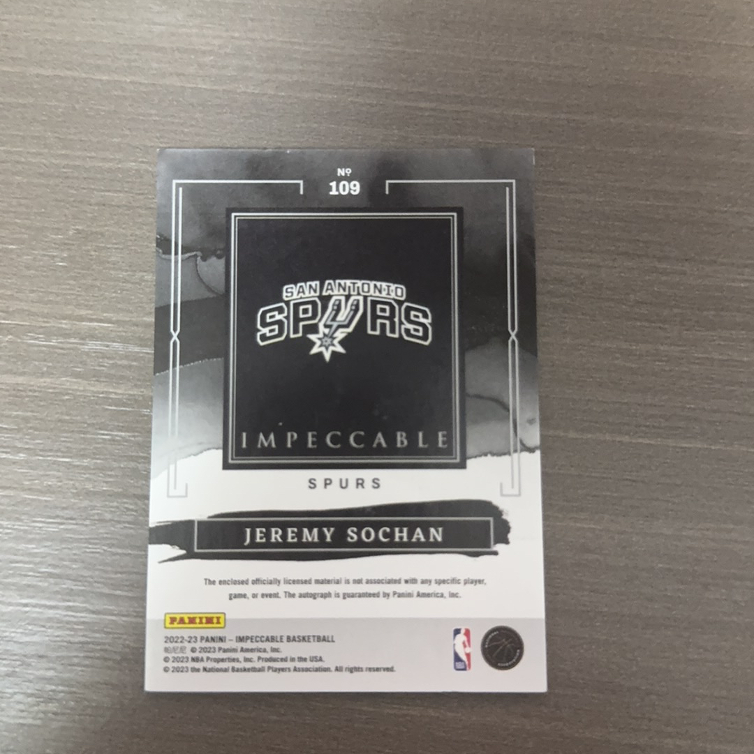 2022-23 Panini Impeccable Jeremy Sochan 小真金 马刺 杰里米 索汉 新秀RC /99编 RPA 球衣卡签 patch签字
