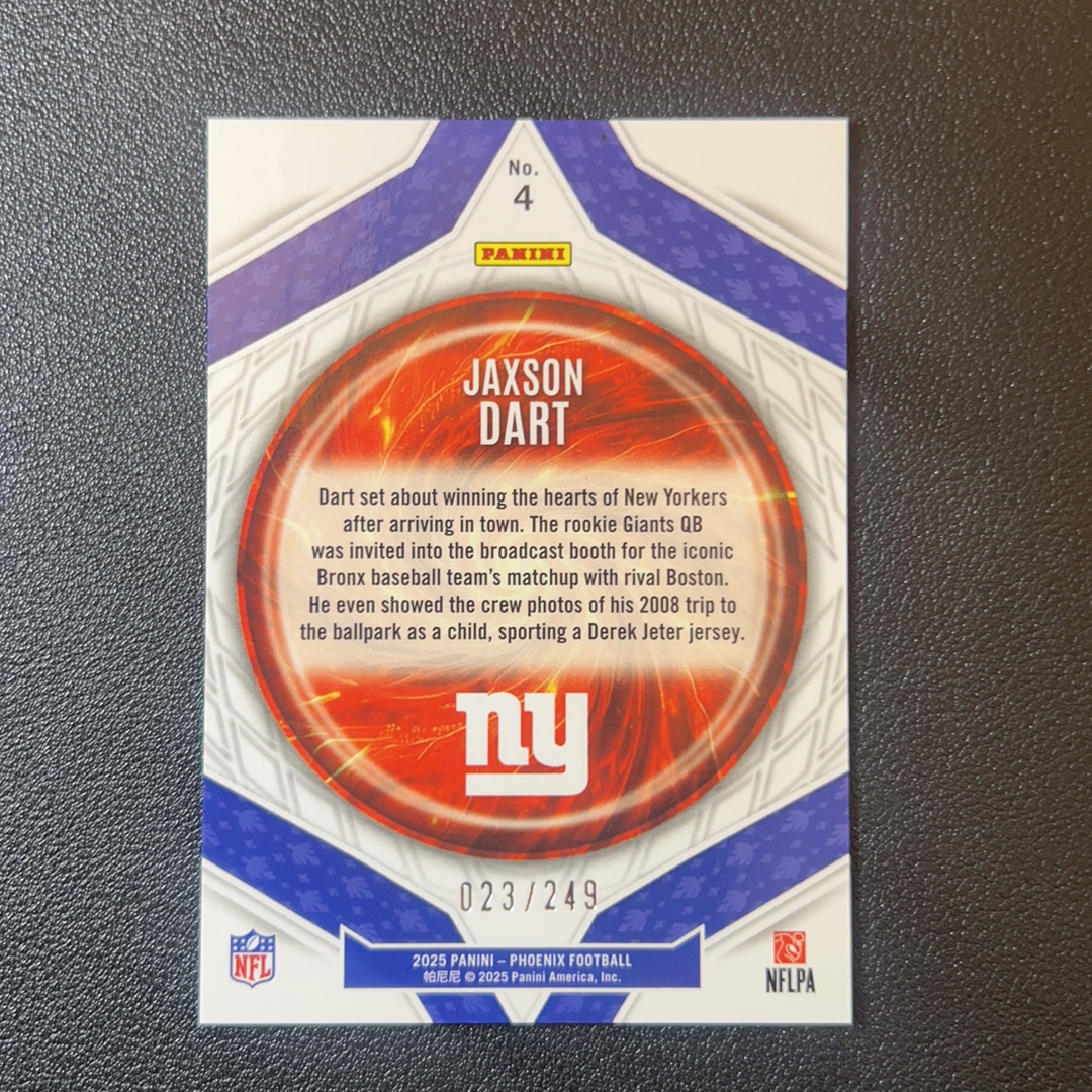 2025 Panini PHOENIX Jaxson Dart RC 贾克森 达特 23/249编 新秀 橄榄球 nfl 凤凰 paragon特卡 第一张 轻印- S00260