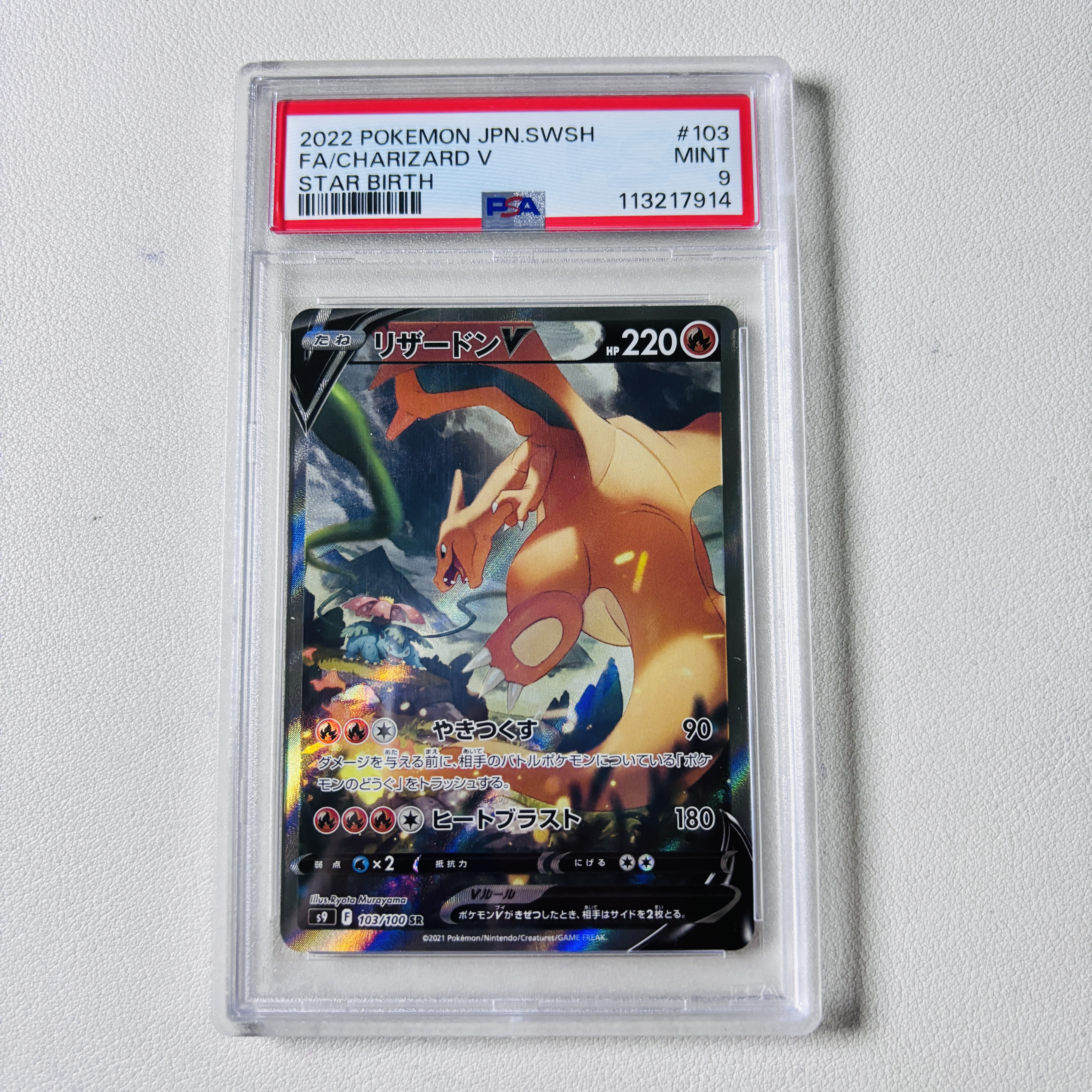 2022 Pokemon TCG SWORD & SHIELD STAR BIRTH FA/CHARIZARD V ja #103 喷火龙V S9-103/100 SR 可博PSA10 8.5