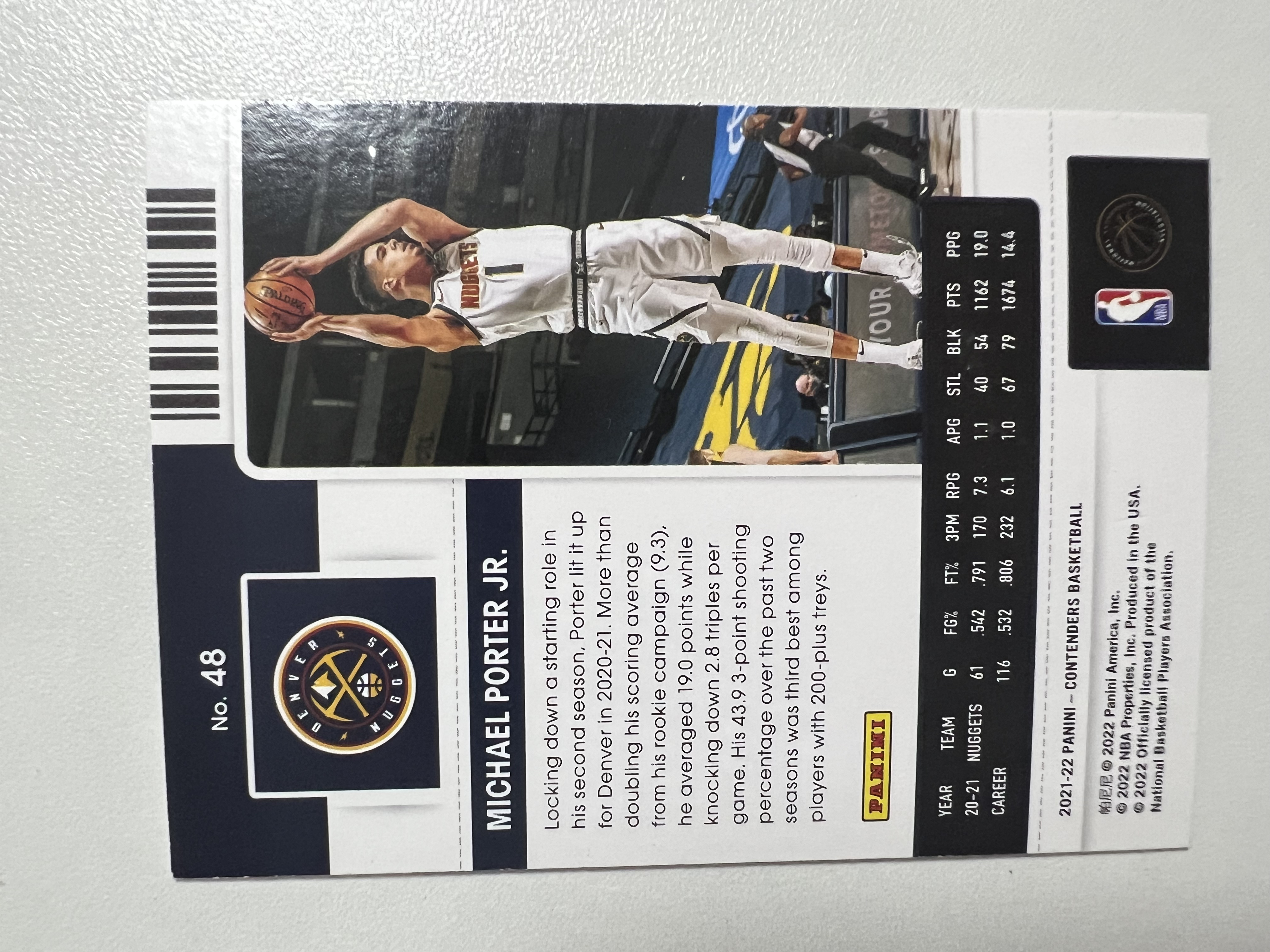 2021-22 Panini Contenders Michael Porter Jr. #48 小迈克尔 波特 掘金 球票 base 收藏凑套 卡品如图