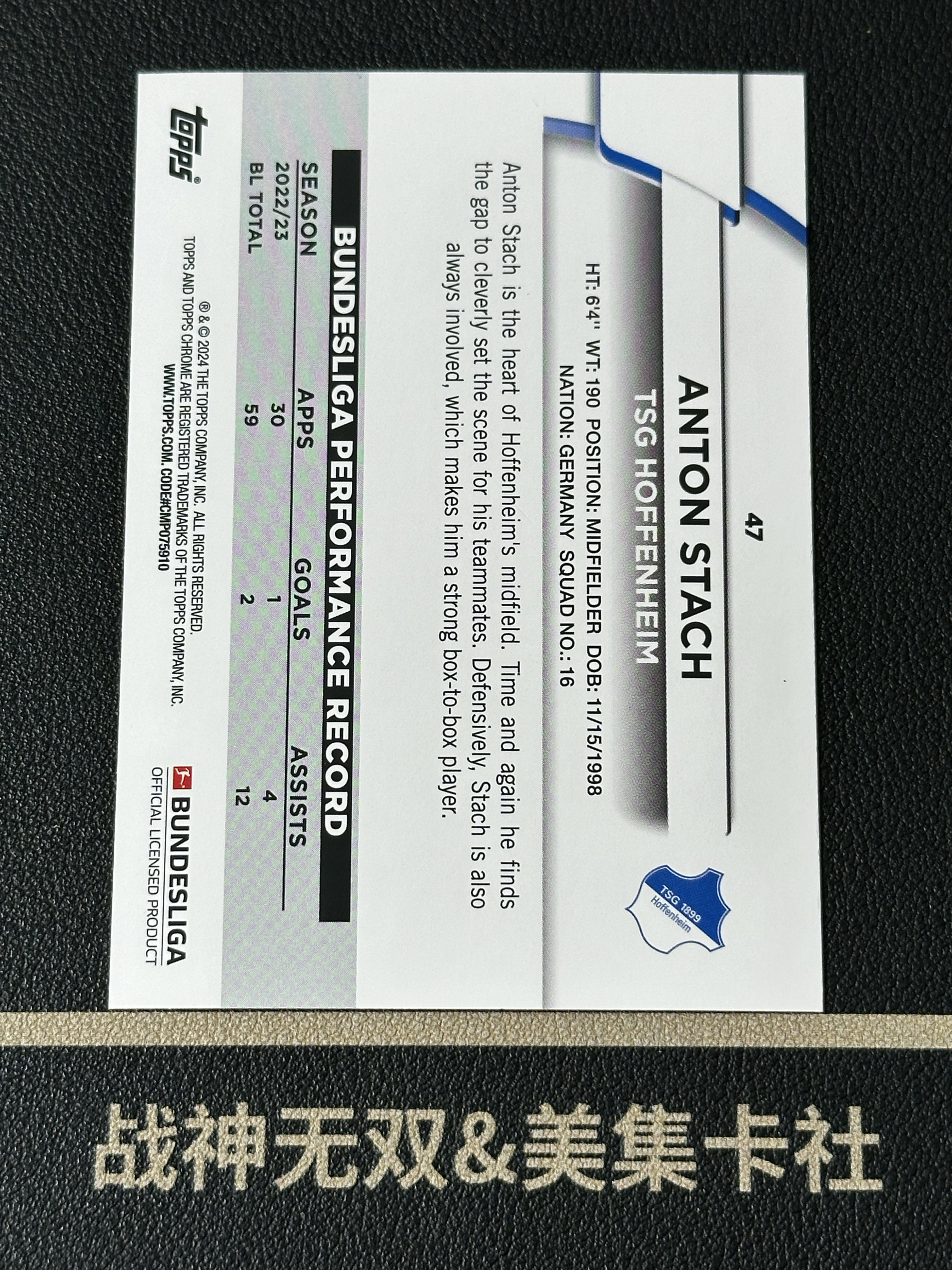 2023-24 Topps UCC Anton Stach 德甲碧玉 紫折 15编 斯塔赫 霍芬海姆 战神无双(非洲鲫)