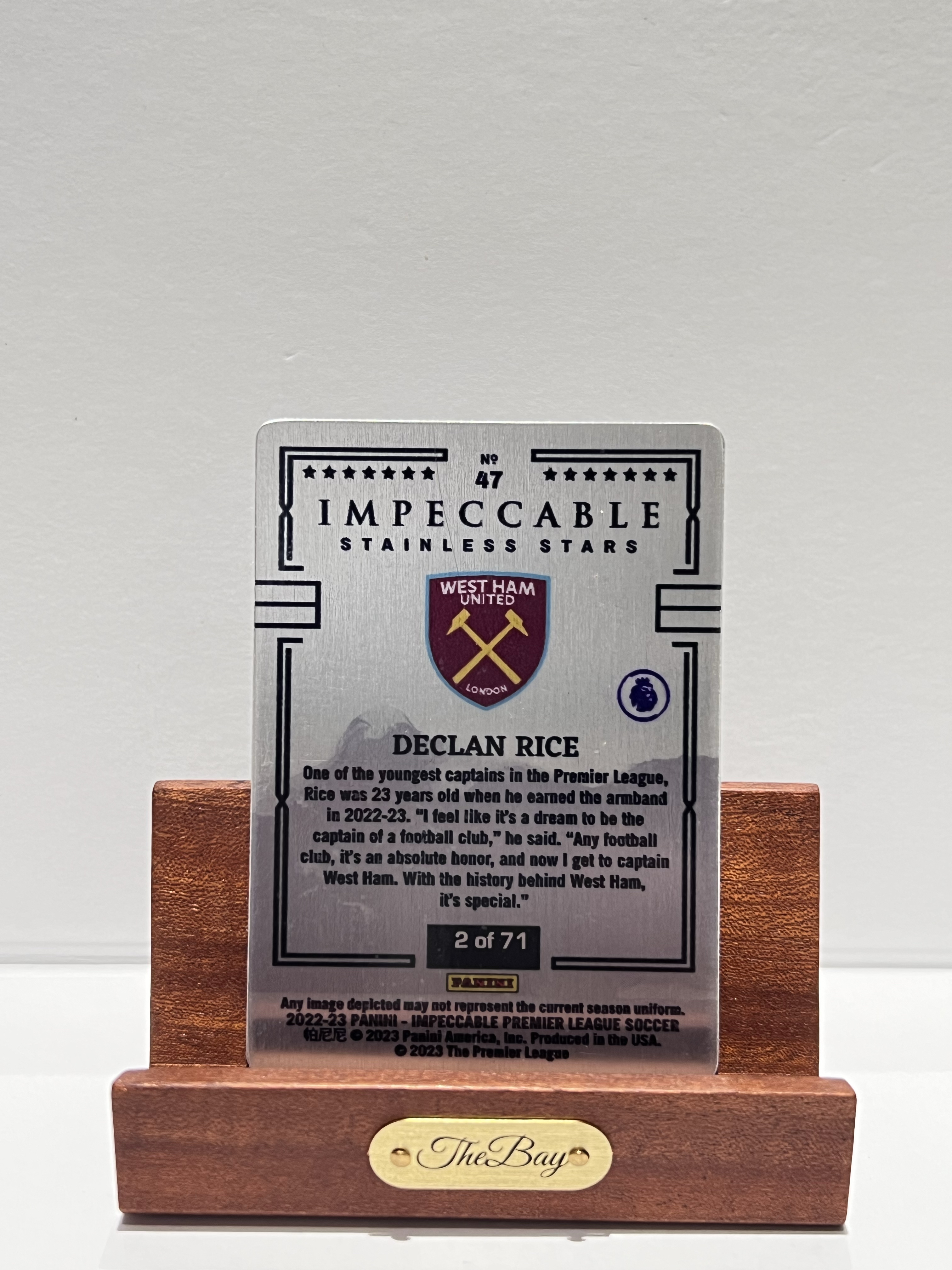 2022-23 Panini Impeccable Declan Rice 【湾区拍档代卖】英超 小真金 赖斯 2/71编 铁板 金属板 西汉姆联 英格兰 阿森纳 卡品如图 G-