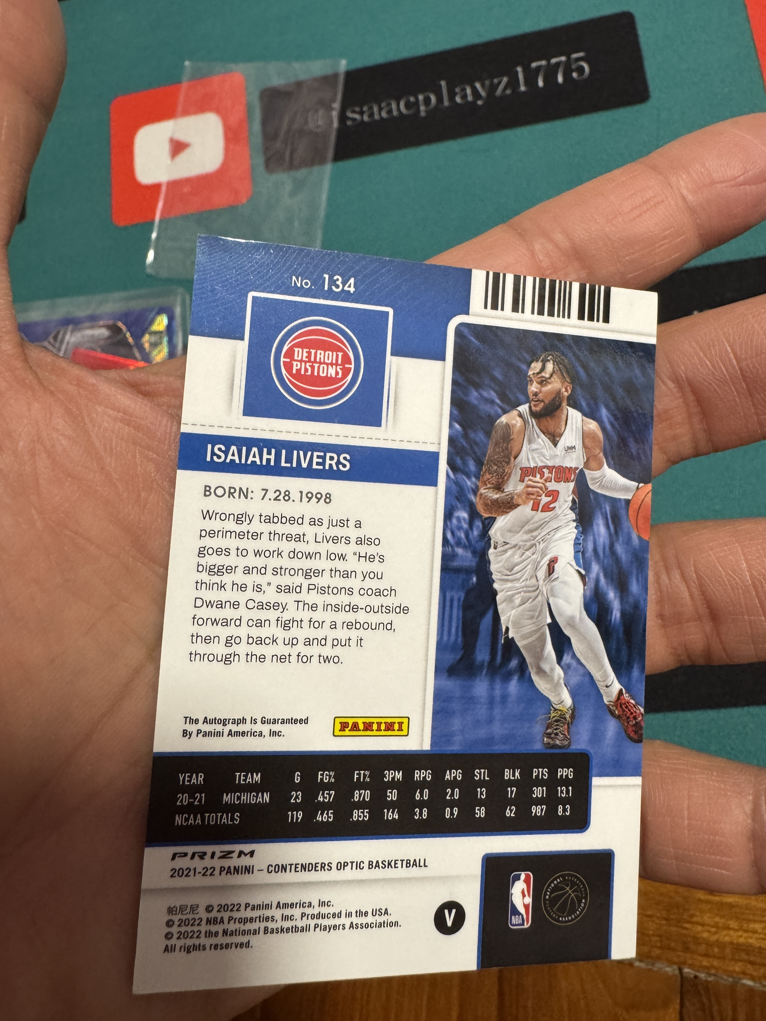 2021-22 Panini Prizm Isaiah Livers RC 感恩节优惠 活塞 以赛亚 利弗斯 PZ PRIZM 贴签 折射 卡品如图