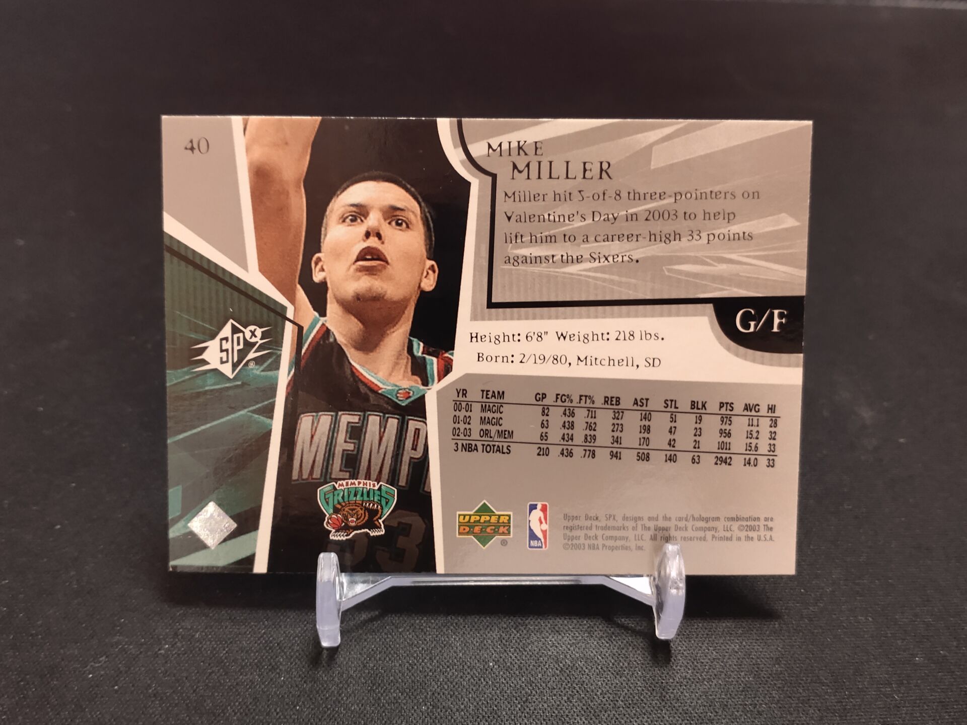 【浩行拍卖 截标预付82%】2003 upper deck ud spx mike miller 灰熊 迈克 米勒 全息特卡 折射 专收必备 瑕疵看图「囍765」1125P01緲