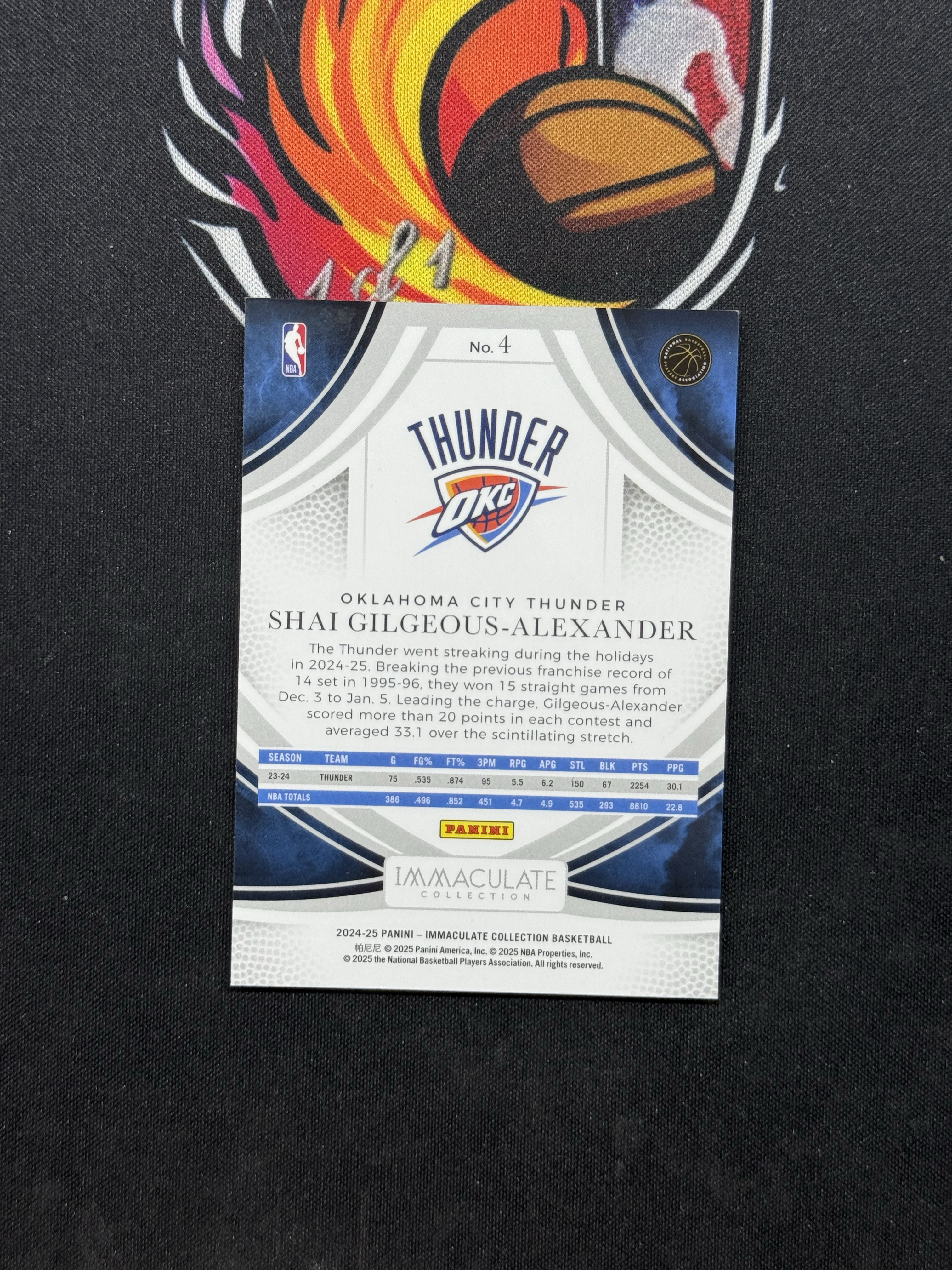 2024-25 Panini Immaculate Shai Gilgeous-Alexander 爱咪咪 雷霆 SGA 亚历山大 08/25编 蓝平行 低编 base 卡品如图 十分稀有 收藏必备