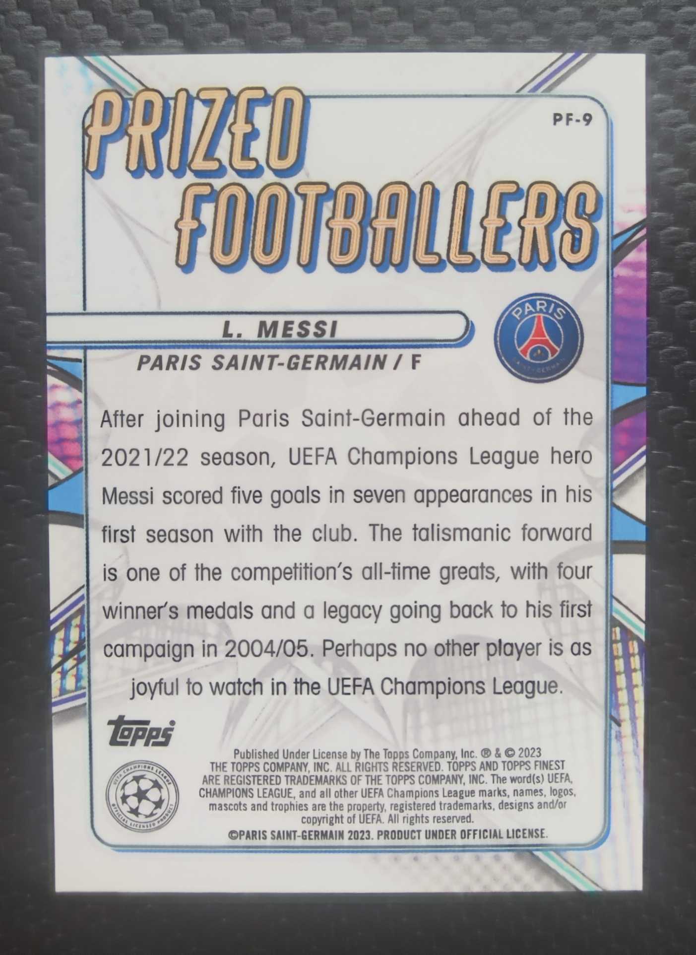 2023 Topps Finest Lionel Messi 欧冠 阿根廷 巴萨 巴塞罗那 巴黎 梅西 梅老八 150编 蓝折射 队服同色 蓝配蓝 典范球员 特卡 实卡精美 卡品见图 阅读描述
