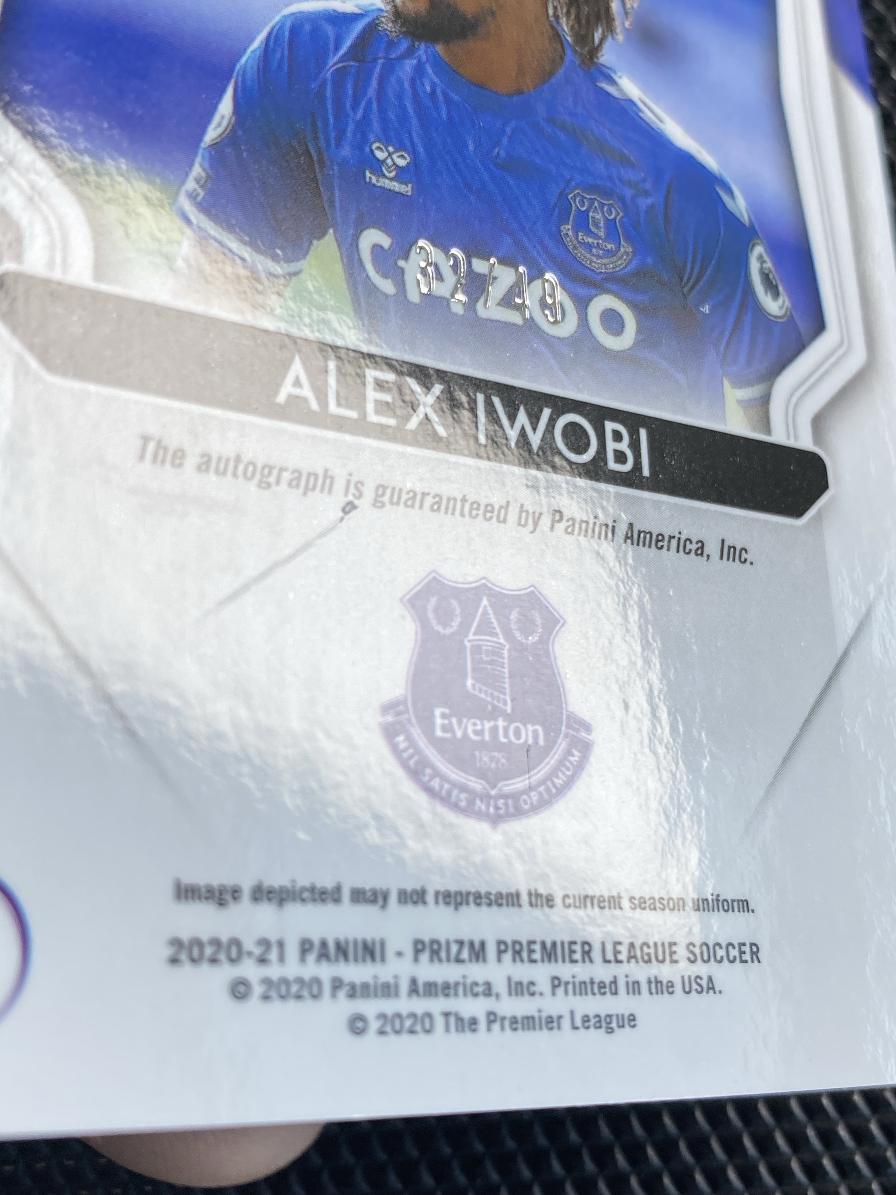 【深情拍卖】2020-21 Panini Prizm Alex Iwobi 埃弗顿 伊沃比 49编 签字 紫折 卡品如图 #js06#