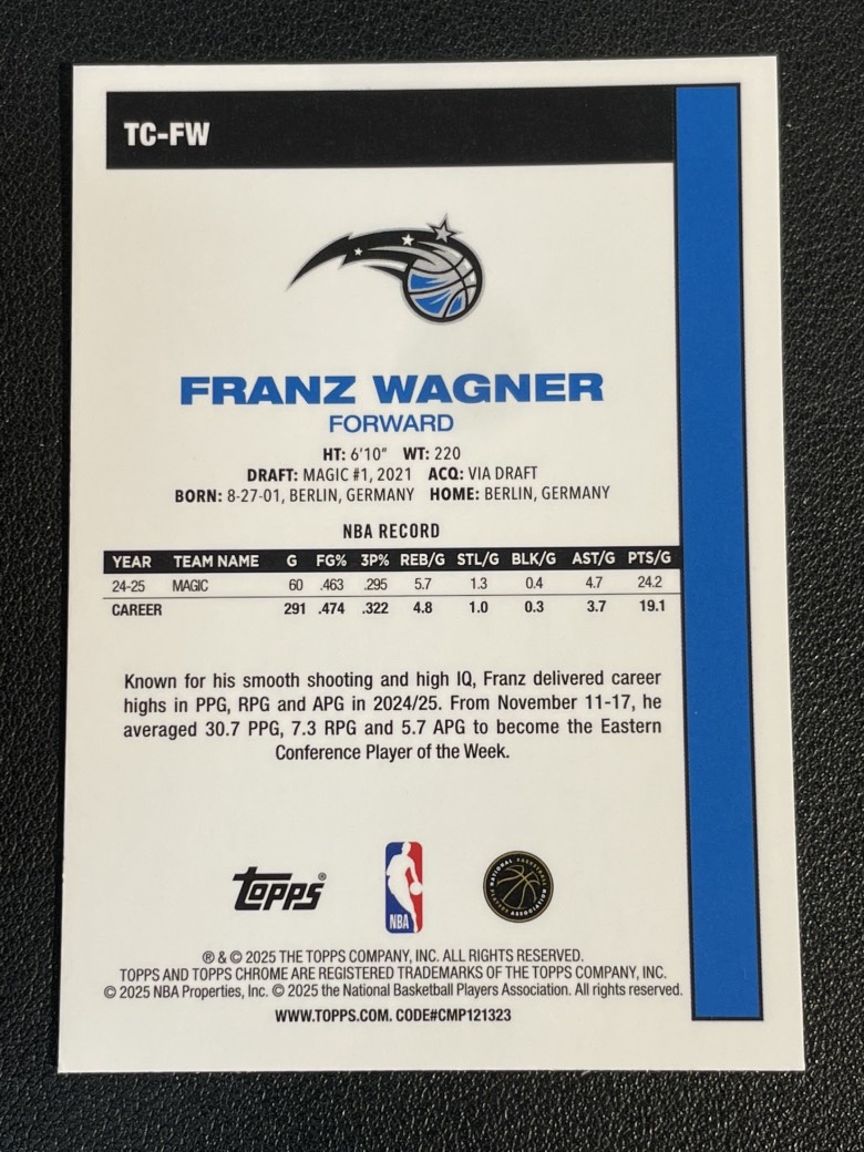 2025 Topps NBA Flagship Franz Wagner 92 弗朗茨 瓦格纳 魔术 1980复古 折射 银mojo折 实卡精美 卡品如图 尖叫代拍 Lance