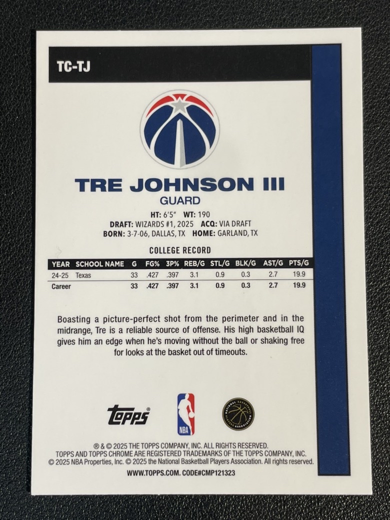 2025 Topps NBA Flagship Tre Johnson RC 99 特雷 约翰逊三世 奇才 新秀 1980复古 折射 银mojo折 卡品如图 尖叫代拍 Lance