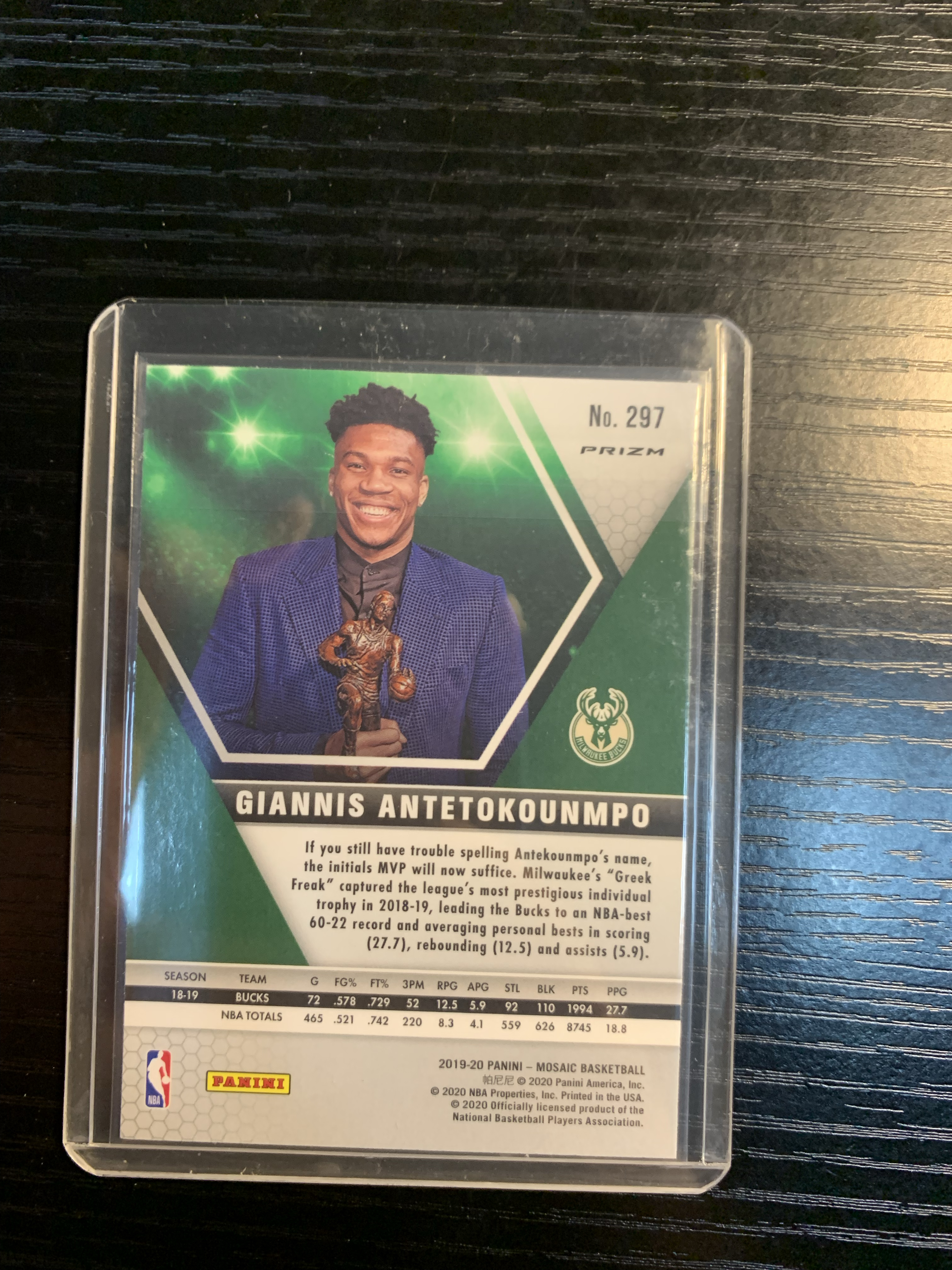 2019-20 PANINI MOSAIC GIANNIS ANTETOKOUNMPO 扬尼斯 阿德托昆博 字母哥 马赛克 折射 马赛克折 雄鹿 篮球 彩虹 空白