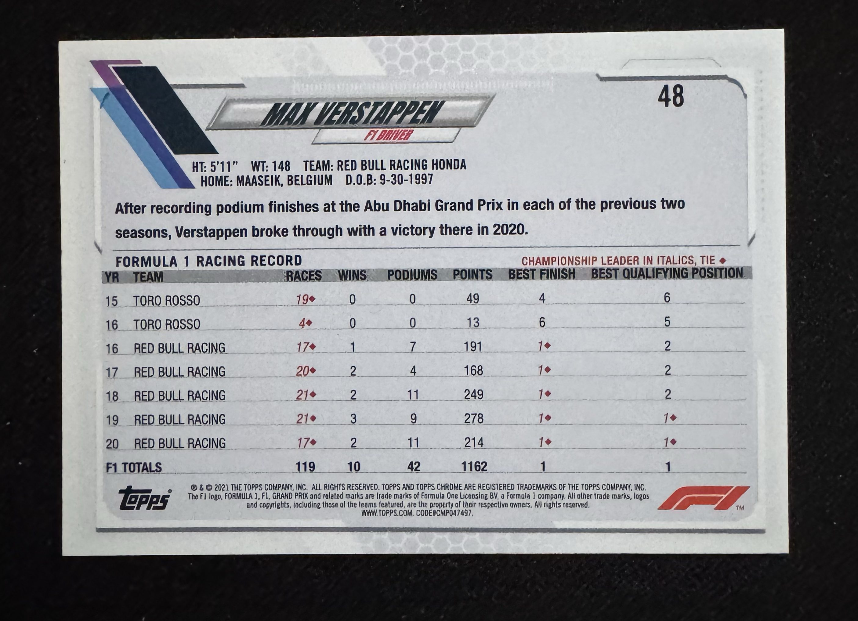 2021 Topps Chrome Max Verstappen F1 维斯塔潘 阿布扎比大奖赛获胜选图 黑白棋盘折 四冠王 红牛车队 收藏凑套必备