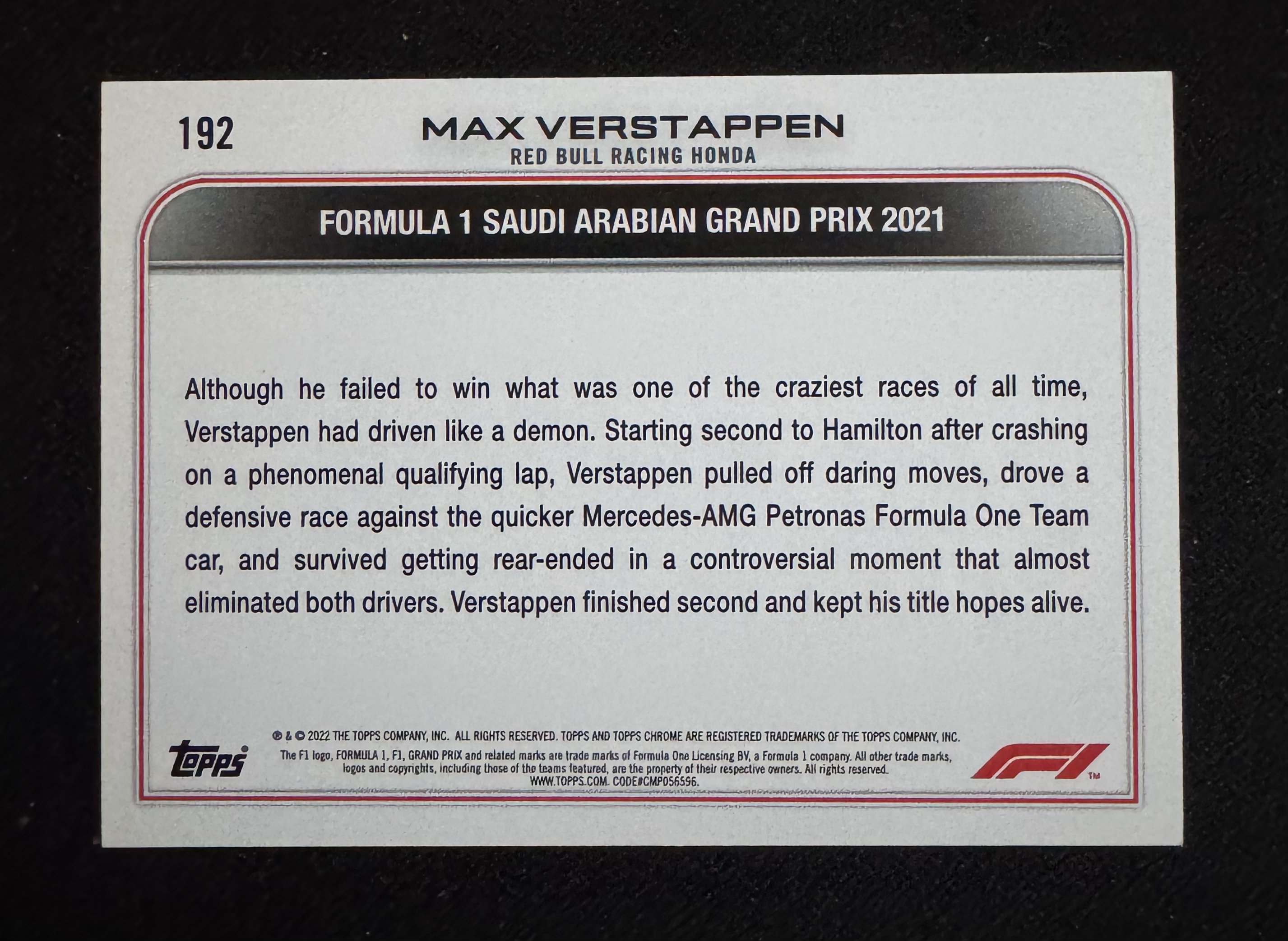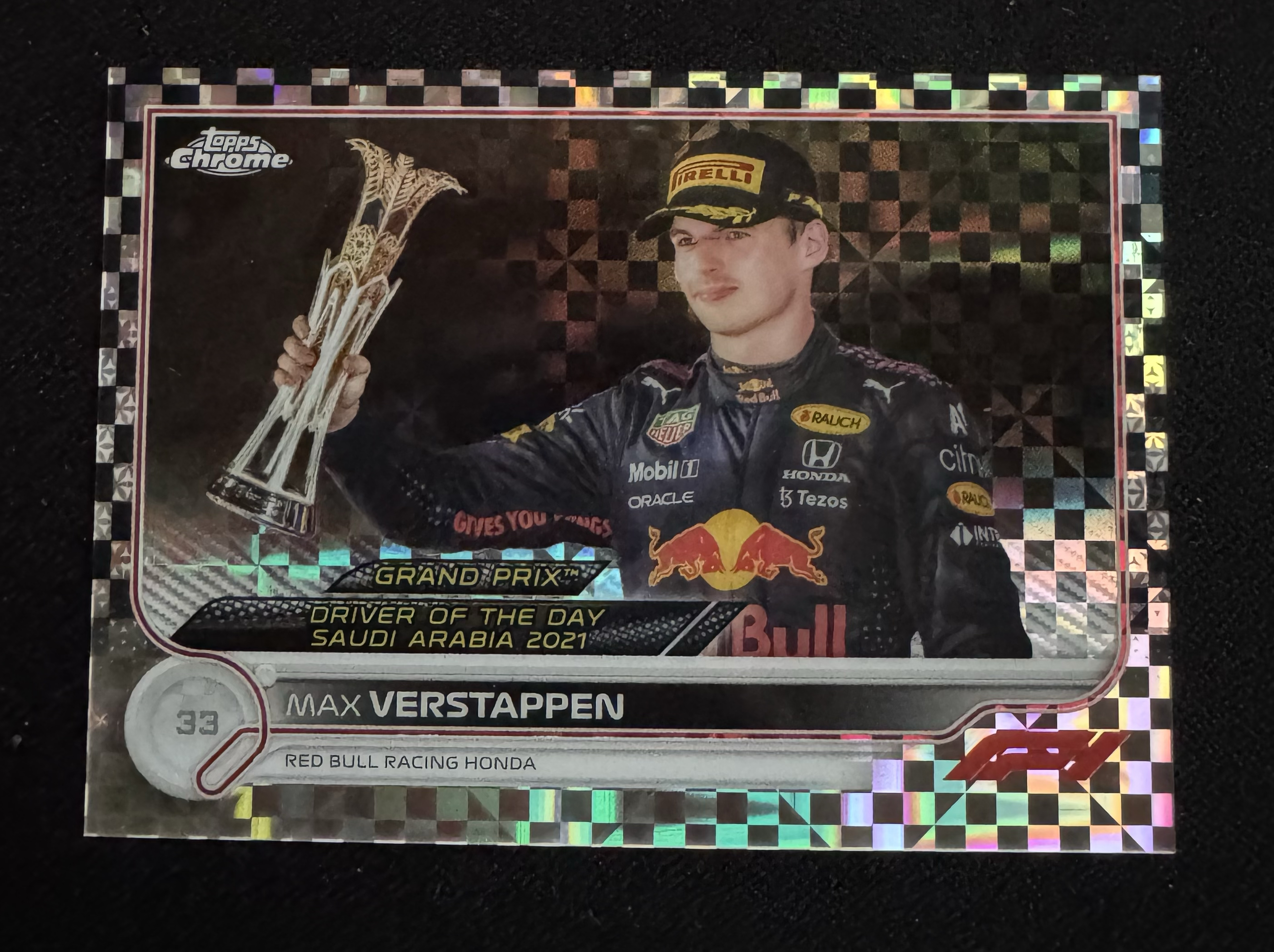 2022 Topps Chrome Max Verstappen F1 维斯塔潘 2021年沙特阿拉伯大奖赛获胜选图 黑白棋盘折 四冠王 红牛车队 收藏凑套必备