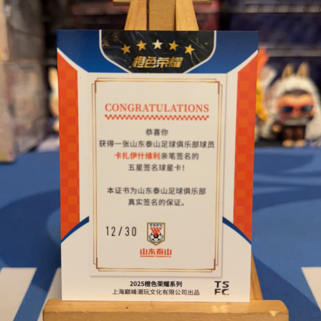 2025 山东泰山 官方队盒 橙色荣耀 卡扎伊什维利 五星签字 银折卡签 12/30编 收藏必备 鲨