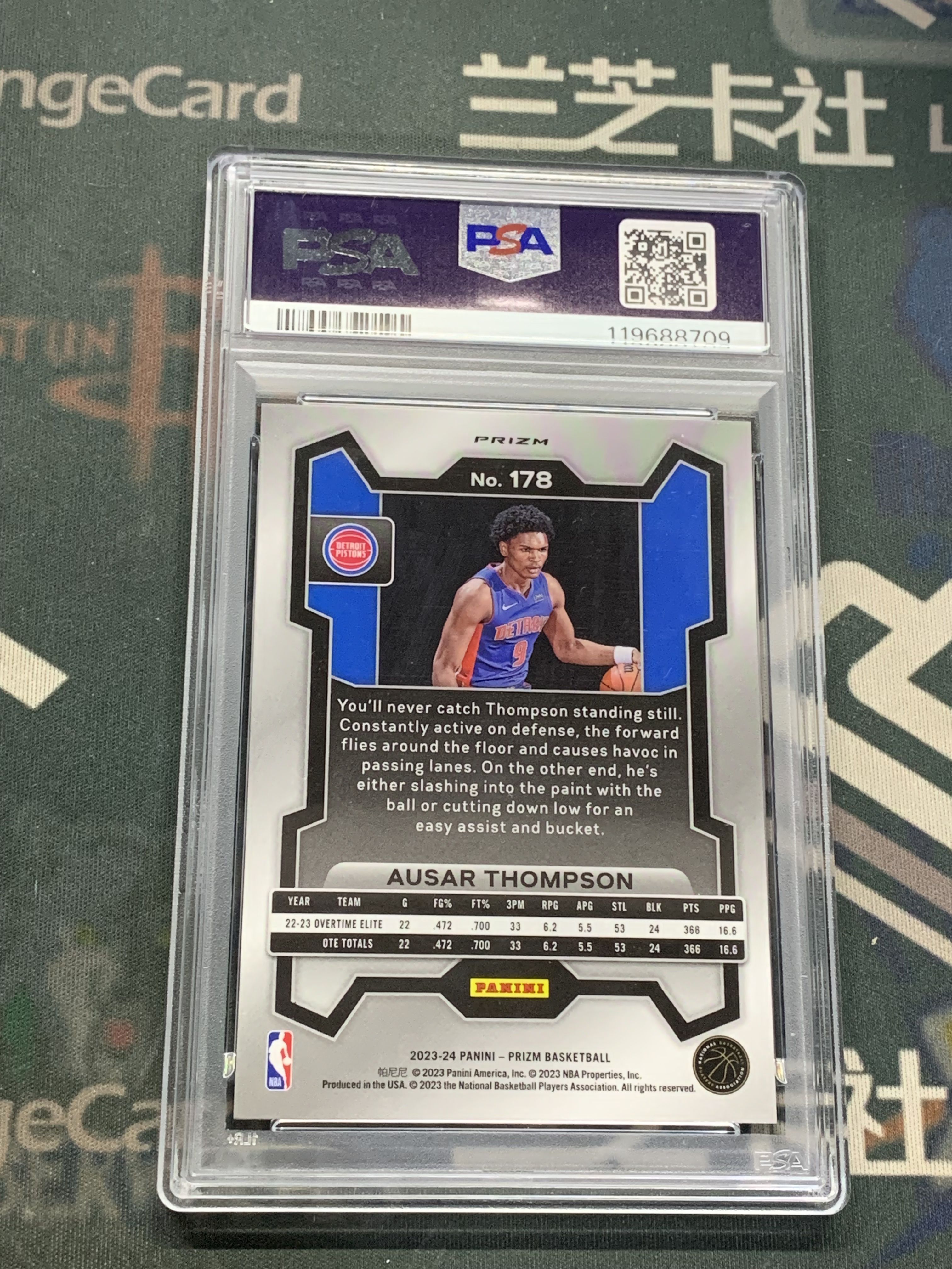 墨迹,卡品如图请看仔细,照片很清楚!请看清楚再拍!邮费默认中通:江浙沪皖10元,其它地区15元,超重另算。顺丰到付默认陆运,如需要空运请留言说明。卡淘是线上付款,不累计。所有拍品图片不管有没有卡具都不包含卡具,单卡过百送夹过千送砖!如需卡具请另付费用。卡具具体金额请发站内信询问。打包卡不保证每张都套卡膜,不保证每张卡品,个别瑕疵不会注明,介意勿拍!所有卡有疑问均可以发站内信或者QQ索要细节图!折射系列系列经常会有一道折射横线或竖线是印刷问题不属于卡品残次范畴,印刷线在我们这里不属于卡品问题!介意者请勿拍!厚卡、老卡有轻微白边白角都属于正常现象!如无特殊说明均为通行品。IMM,NOIR,木盒,金书等厚卡系列卡品一般,边角经常有小问题介意勿拍!镜面卡签字经常有横条竖条印刷划痕属于正常通行品相,评级卡砖上的划痕和pri破损以及评级砖内的卡有卡品问题一律不属于品相问题!各种prizm base以及银折表面的轻微划痕为正常卡品,要评级追求金标和10分者请直接购买金标和10分评级卡。如有特殊情况可以累计2周,累计期的卡以及超出超出2周累计期的卡不再处理任何卡品问题。丢失责任自负!所以请在3天内付款。付款后我们会在3天内发卡,由于我们的发卡量巨大发货前无特殊情况不会回复站内信,请谅解!发货后单号会发站内信留言。12年线下卡店,元年卡淘11万点信誉老卖家兰芝卡社 代卖请加老王微信Loungecard