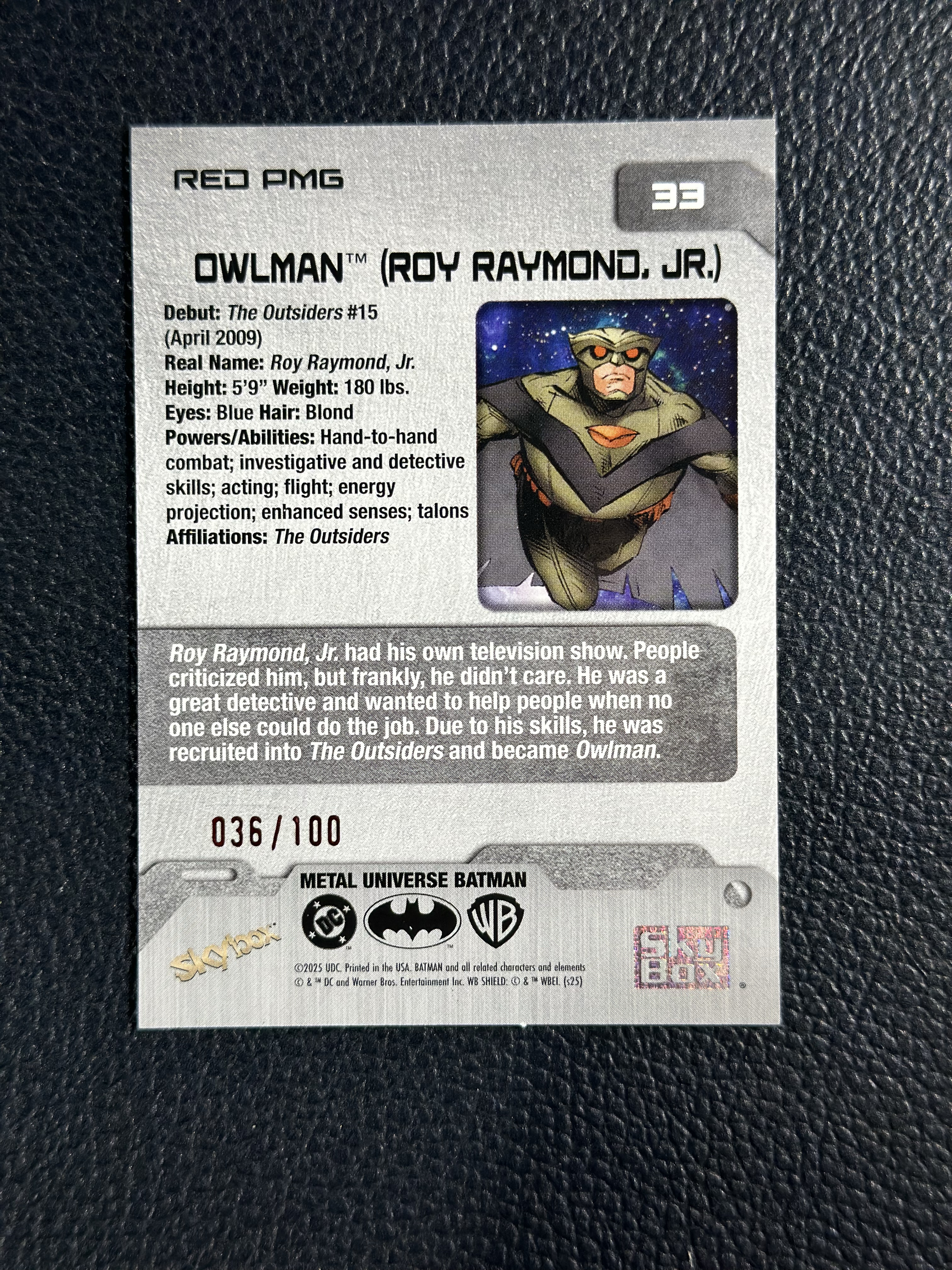 2025 Upper Deck Skybox Metal Batman 元年 DC蝙蝠侠 元年 Kacey拍卖 Owlman (Roy Raymond Jr.) 夜枭 100编红宝石 超帅必备顺品如图
