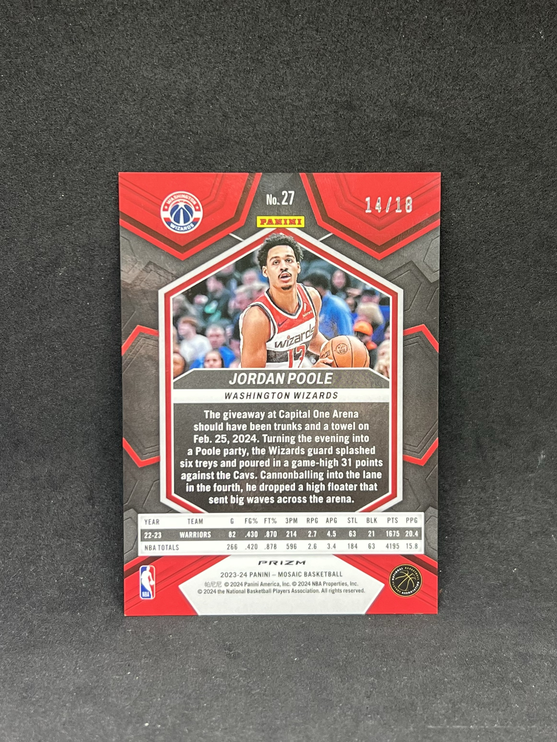 4.品相说明:(1)木盒、国宝、IMM、手提、NOIR、小书、金书、小真金、黑曜石、Encased等厚卡或老卡老系列均有正常白边白角,Prizm、Optic、Select、Flux、Chrome等折射系列薄卡有小划痕、小印记或非人为卡片制作印刷的问题属于正常通行品,镜面系列有小划痕属于通行品相。所有卡片不保证金标,要评级追求金标者请直接购买金标,请有强迫症、品相控的卡迷绕道和谨慎出价;(2)原封卡有明显大瑕疵会标出;(3)所有拍品均为实图专业设备拍摄,参与竞价视为接受卡片的品相,不作特殊说明的都是通行品,如有明显大瑕疵会拍照说明;(4)由于拍摄卡片的角度以及光线的限制,若您对卡片品相仍存在疑问,可在【截标前】向卖家咨询提供更多细节图。