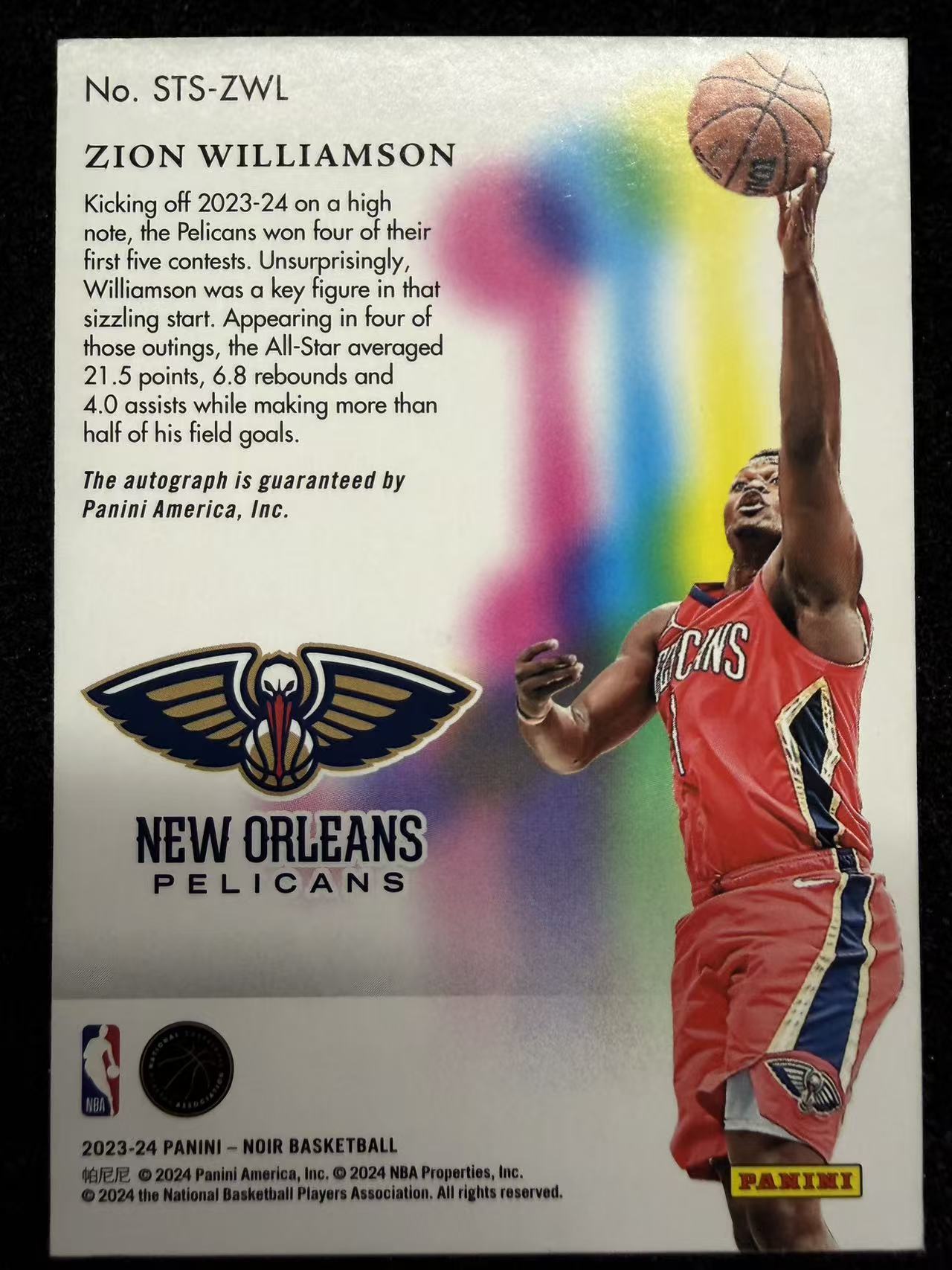 2023-24 Panini Noir Zion Williamson 诺尔系列 鹈鹕 锡安 胖虎 签字 卡签 49编 闪版 影子签