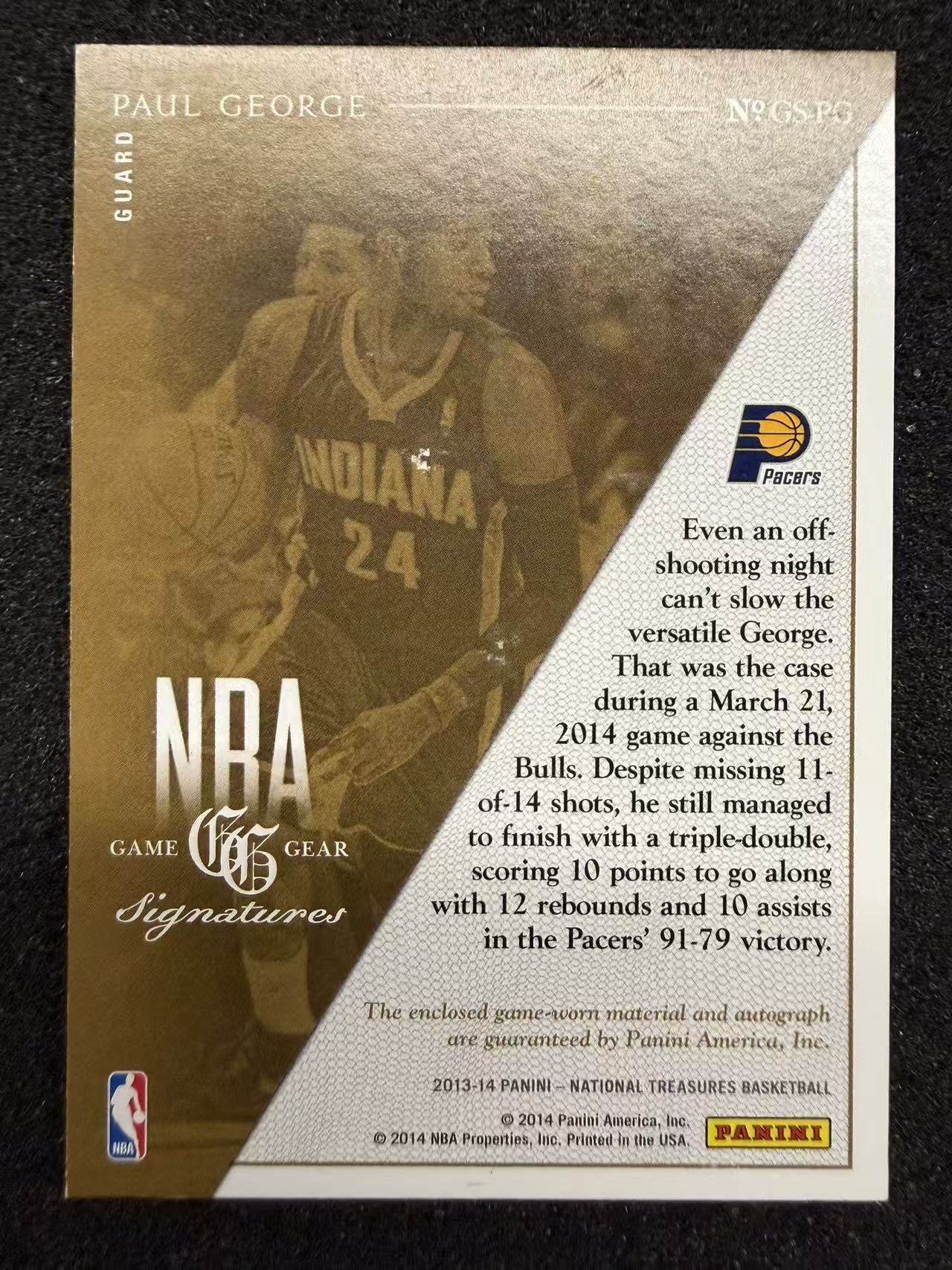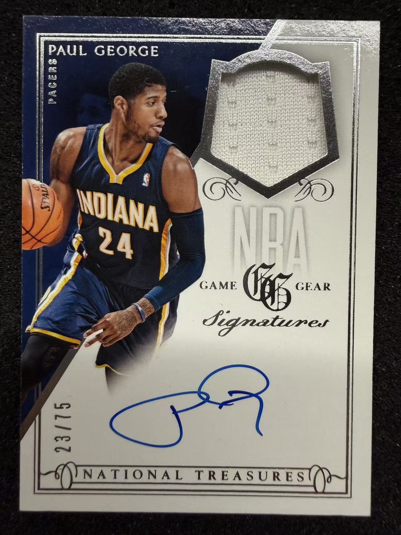 2013-14 Panini National Treasures Paul George 国宝系列 保罗 乔治 泡椒 步行者 小窗 球衣物料 卡签签字 /75编