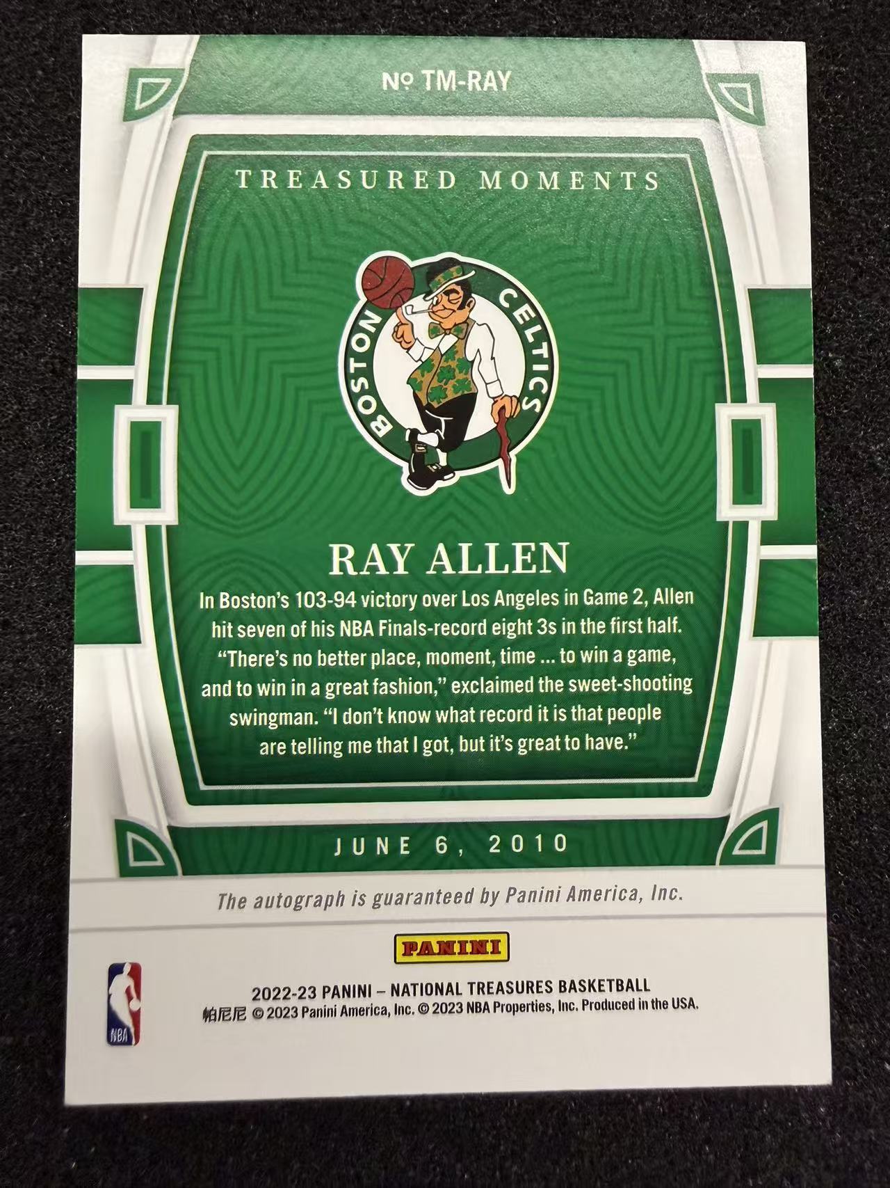 22-23 Panini National Treasures Ray Allen 国宝 雷阿伦 雷 阿伦 三分王 雄鹿名宿 凯尔特人 金版 时刻 卡签签字 /10编 低编
