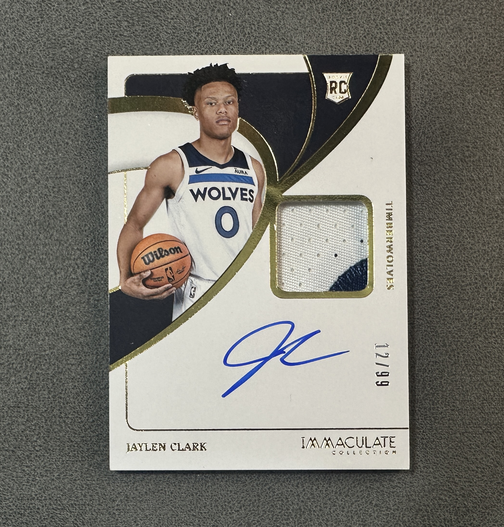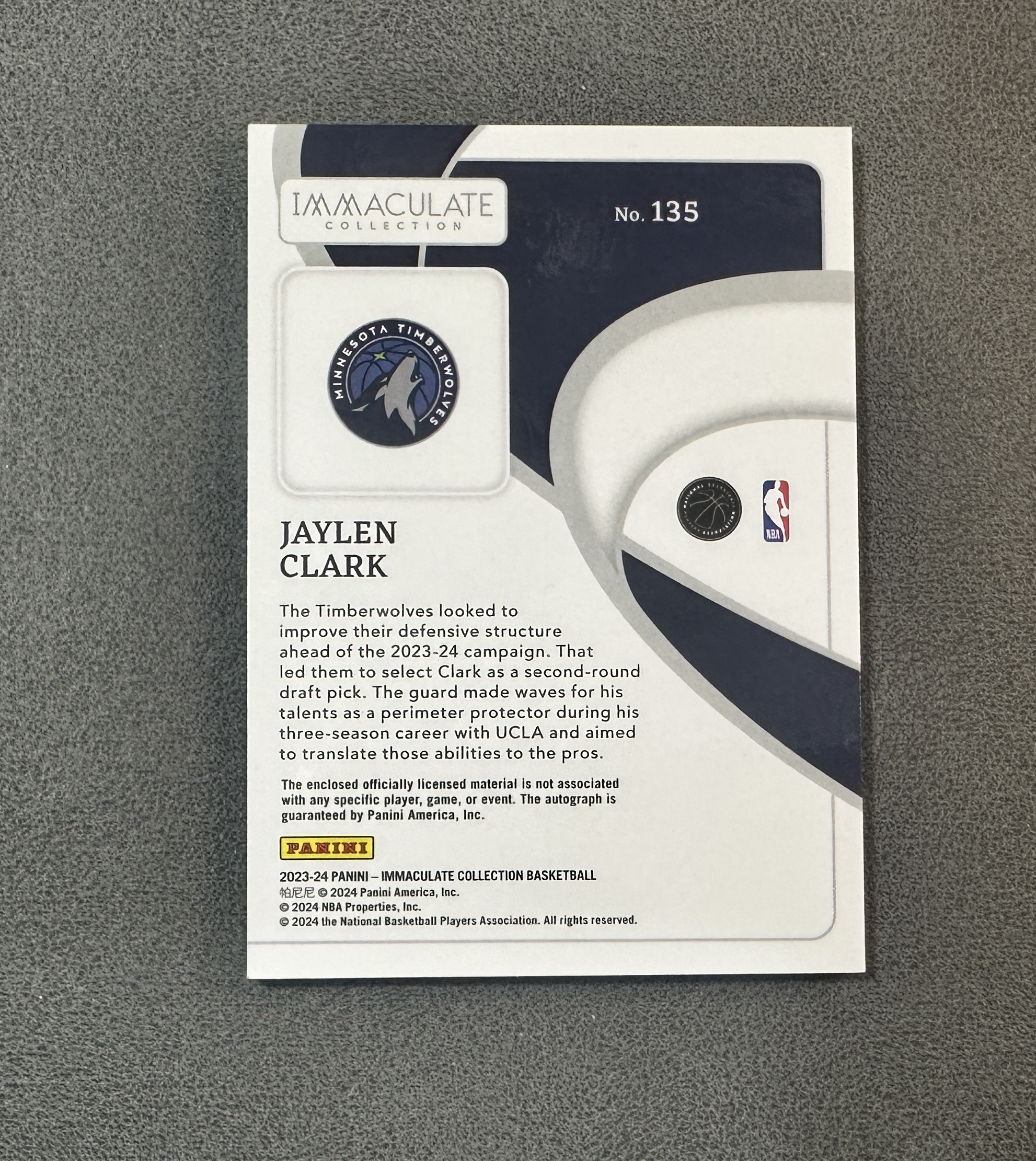 2023-24 Panini IMM Jaylen Clark 爱咪咪 森林狼 杰伦 克拉克 新秀RC /99编 RPA 球衣物料 卡签 patch签字 边角微白 瑕疵如图 @排雷王