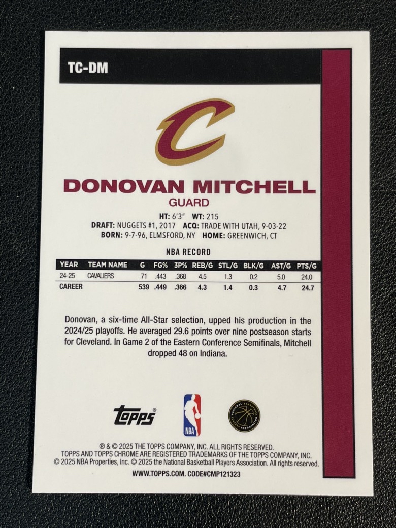 2025 Topps NBA Flagship Donovan Mitchell 147 多诺万 米切尔 骑士 1980复古 折射 银mojo折 卡品如图 尖叫代拍 pink