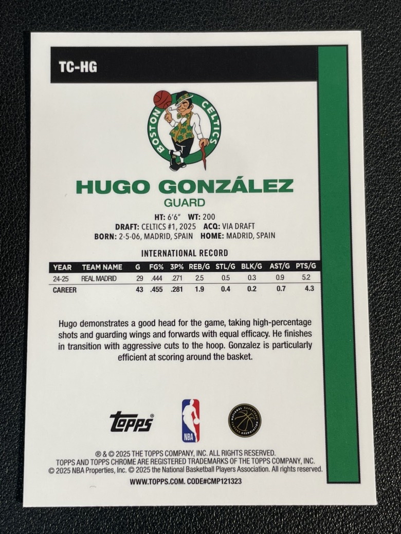 2025 Topps NBA Flagship Hugo Gonzalez RC 164 雨果 冈萨雷斯 凯尔特人 新秀 1980复古 折射 银mojo折 卡品如图 尖叫代拍 pink