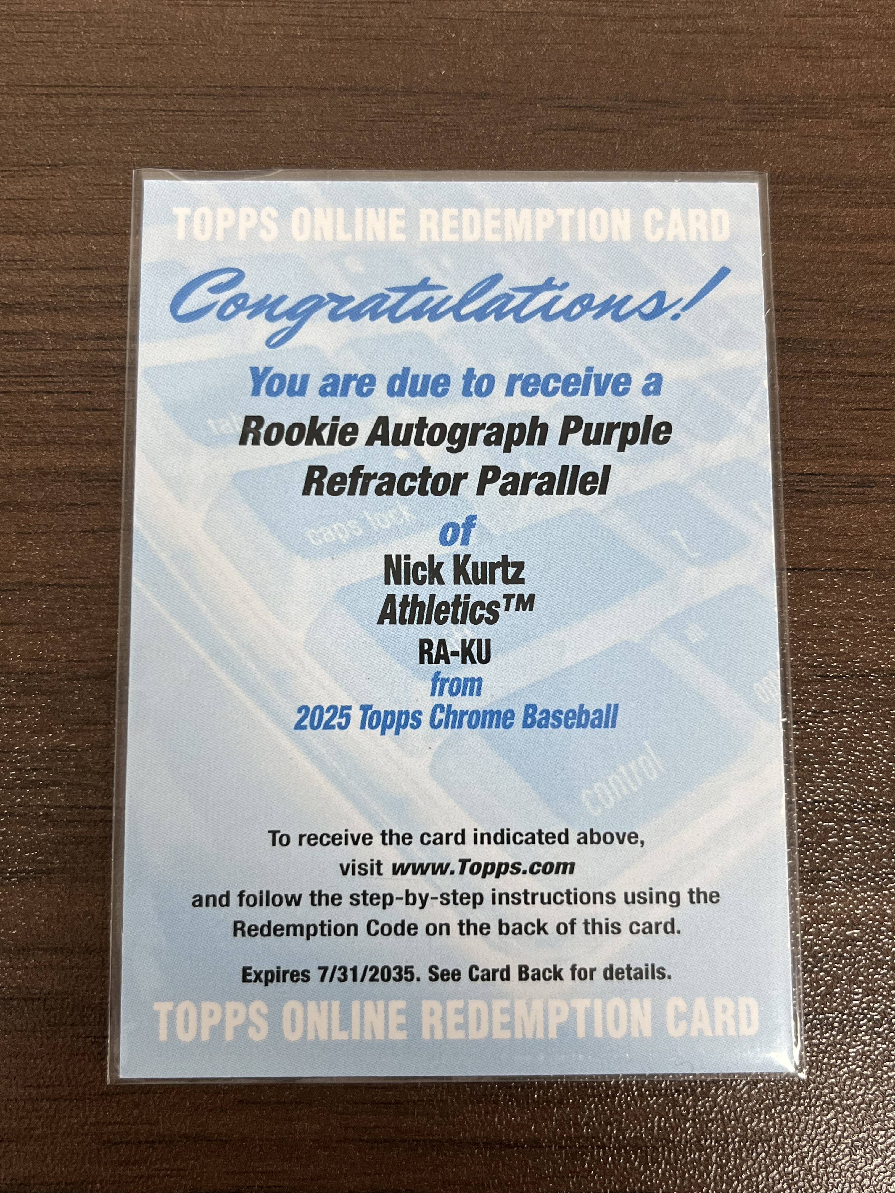 2025 BOWMAN CHROME 奥克兰运动家队 NICK KURTZ 尼克库尔茨 新秀 RC 紫折签字卡 交换卡 不直接发码不喜勿拍 花布袋