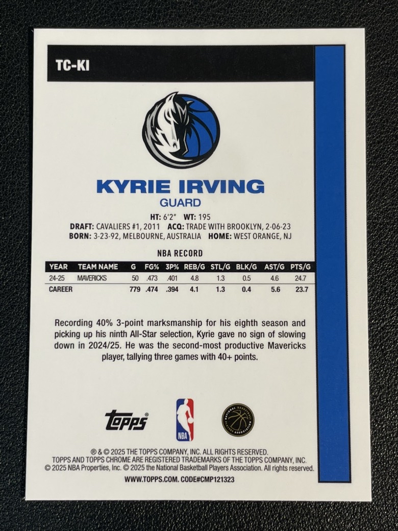 2025 Topps NBA Flagship Kyrie Irving 189 凯里 欧文 独行侠 1980复古 折射 银mojo折 卡品如图 尖叫代拍 pink