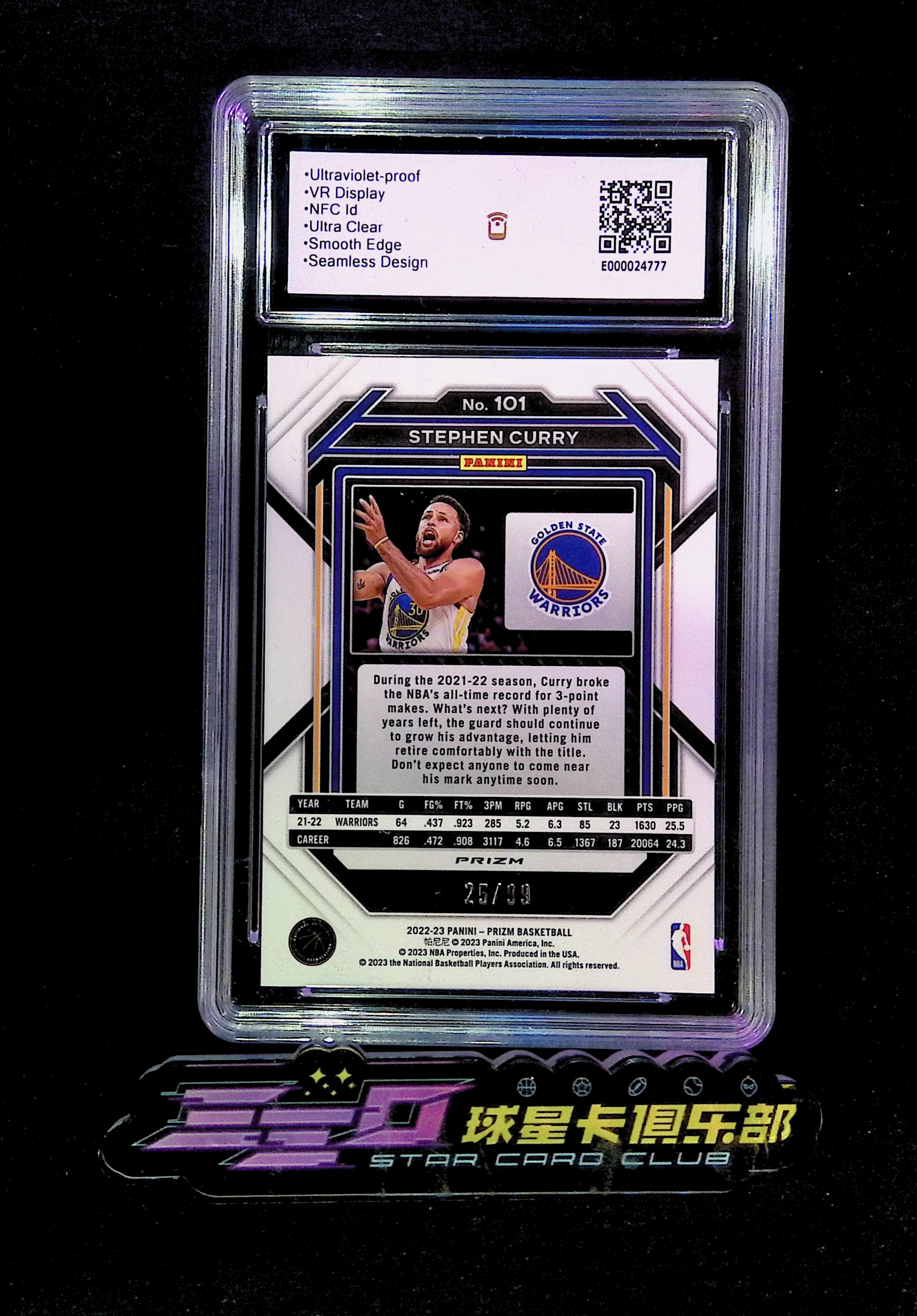 6639【330球星卡实体店代卖】panini 22-23 prizm 斯蒂芬库里(Stephen Curry)紫折 25/99编 小学生 历史3分王 保粹评级9.5 仅顺丰寄付(Lampros)