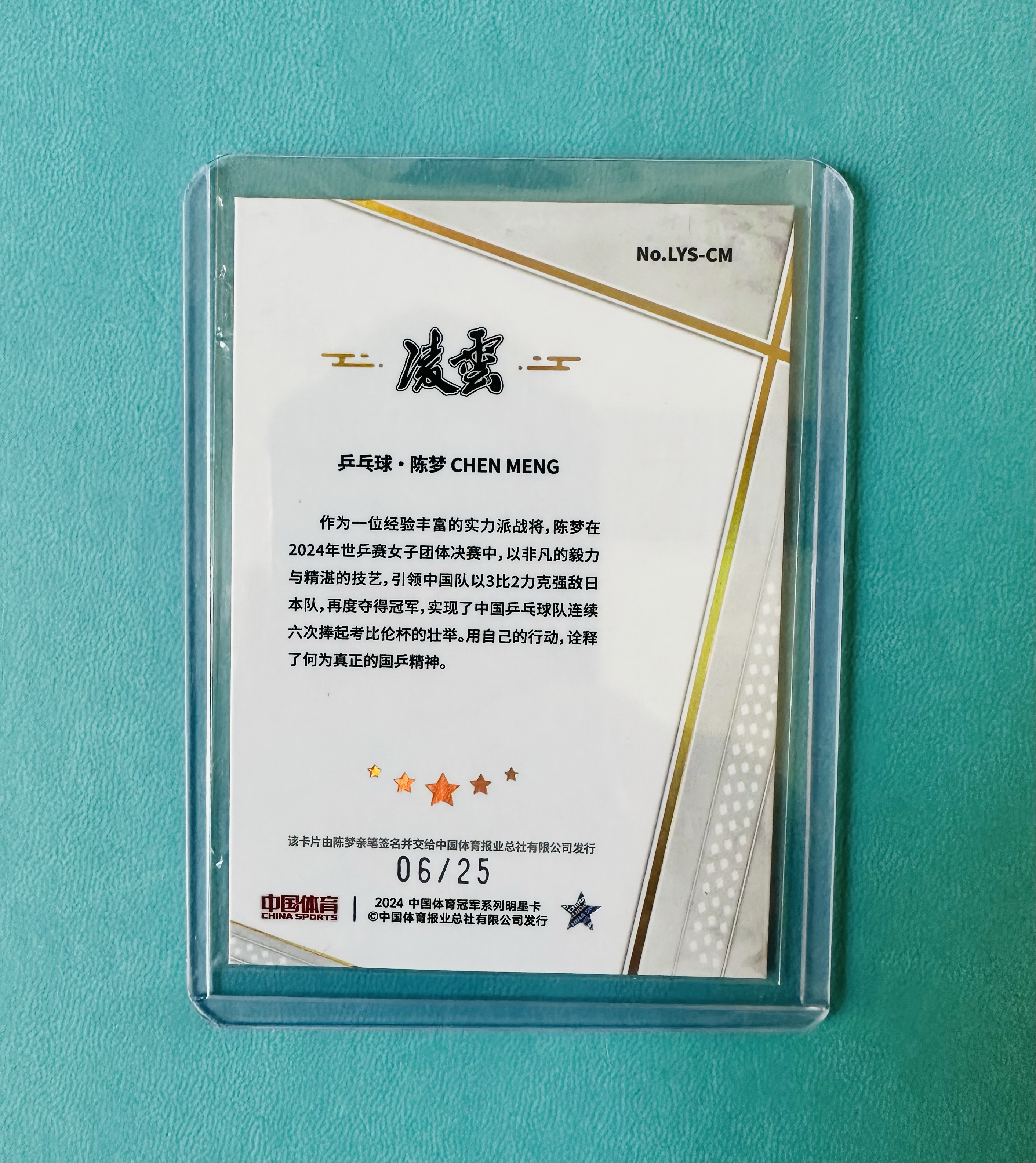 2024 奇卡 QICA 中国体育 凌云 陈梦 蓝碎冰折 凌云签字 25编 乒乓球 奥运冠军 亲签