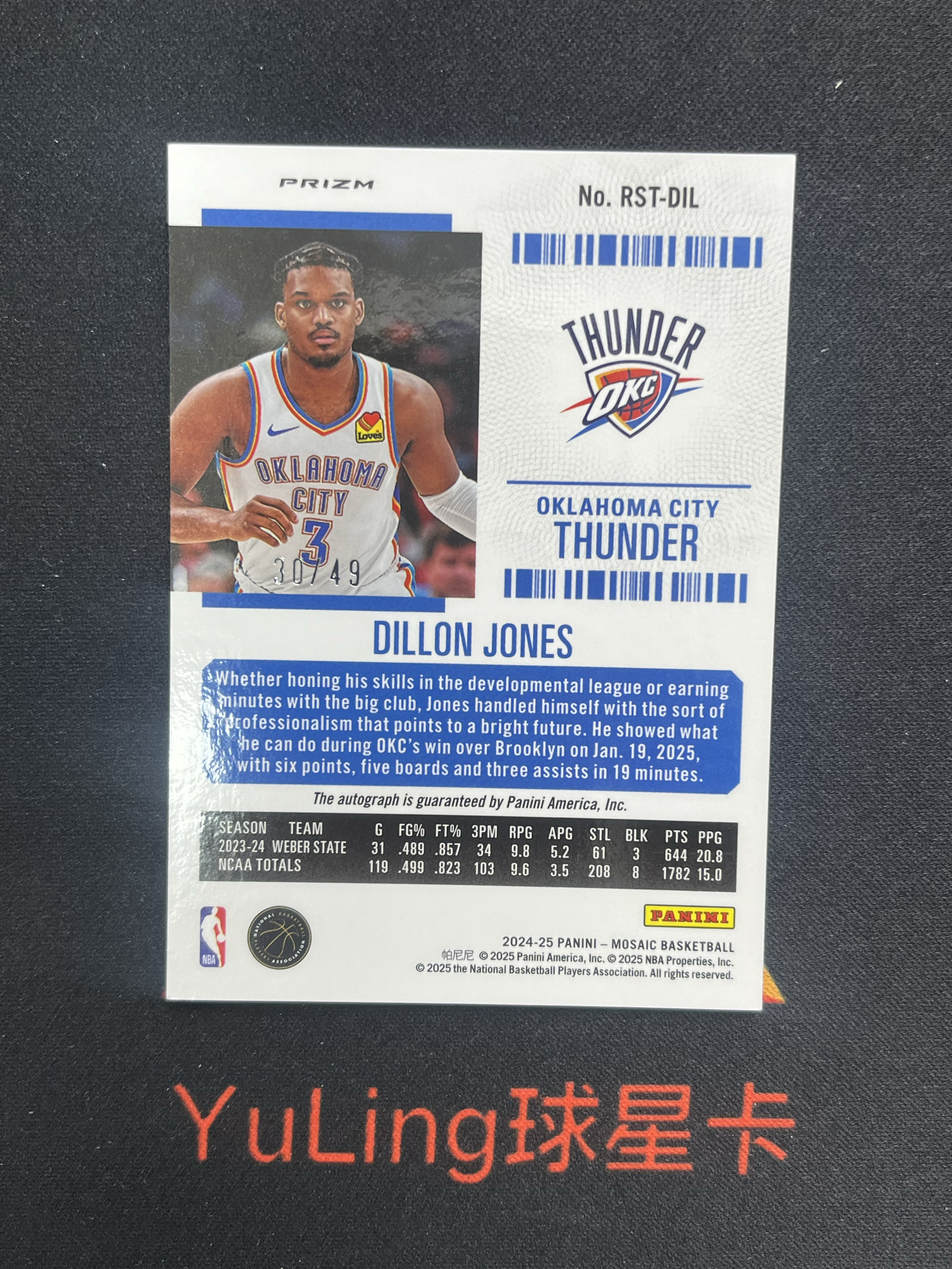 2024-25 Panini Mosaic Dillon Jones RC 【YuLing免手续费代卖】狄龙 琼斯 雷霆 新秀 马赛克 签字 马赛克折 折射 30/49编 瑕疵如图 收藏必备 罐