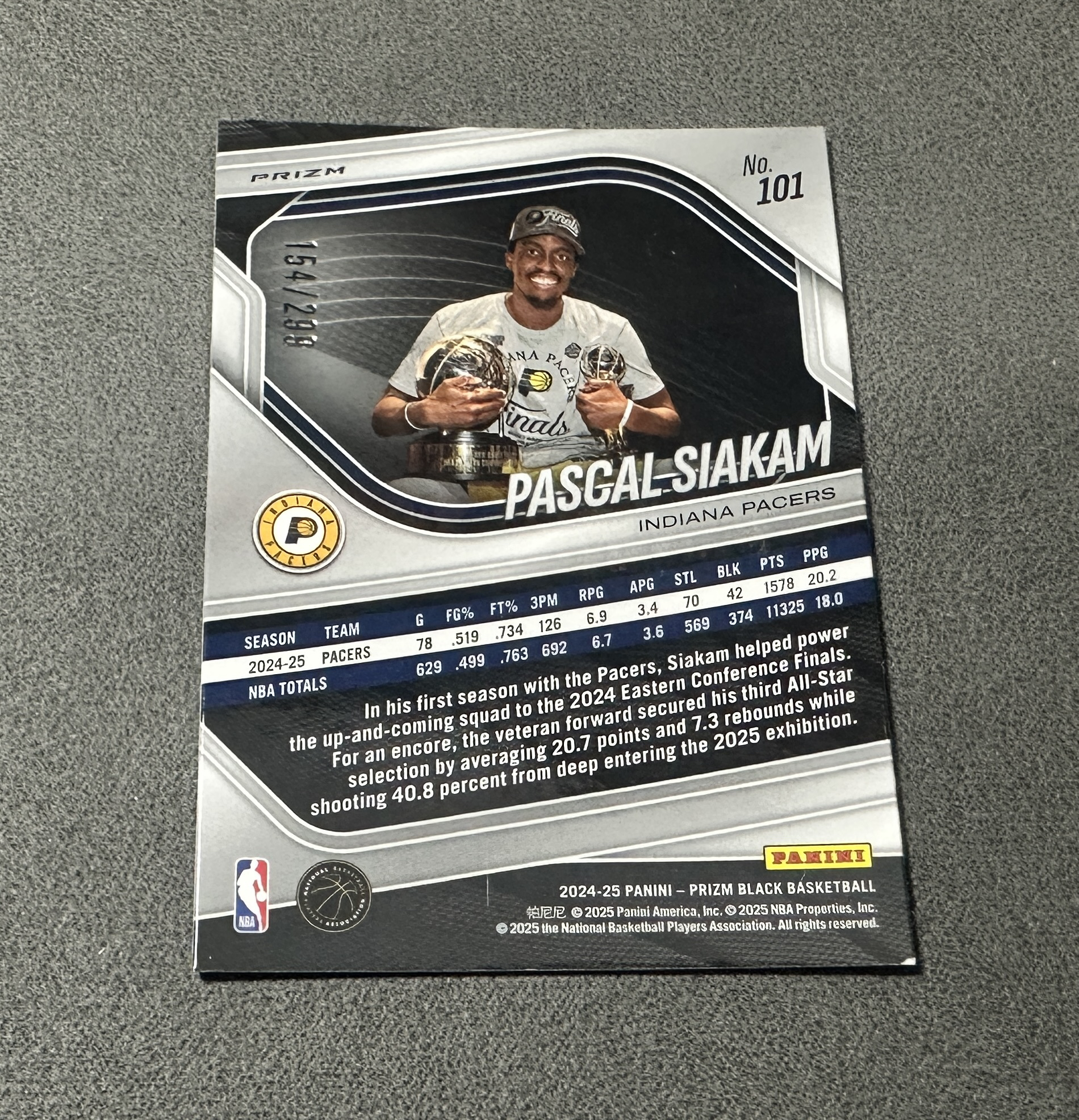 2024-25 Panini Prizm Black Pascal Siakam pz 步行者 帕斯卡尔 西亚卡姆 /299编 红折 捧杯选图 折射 瑕疵如图 @排雷王