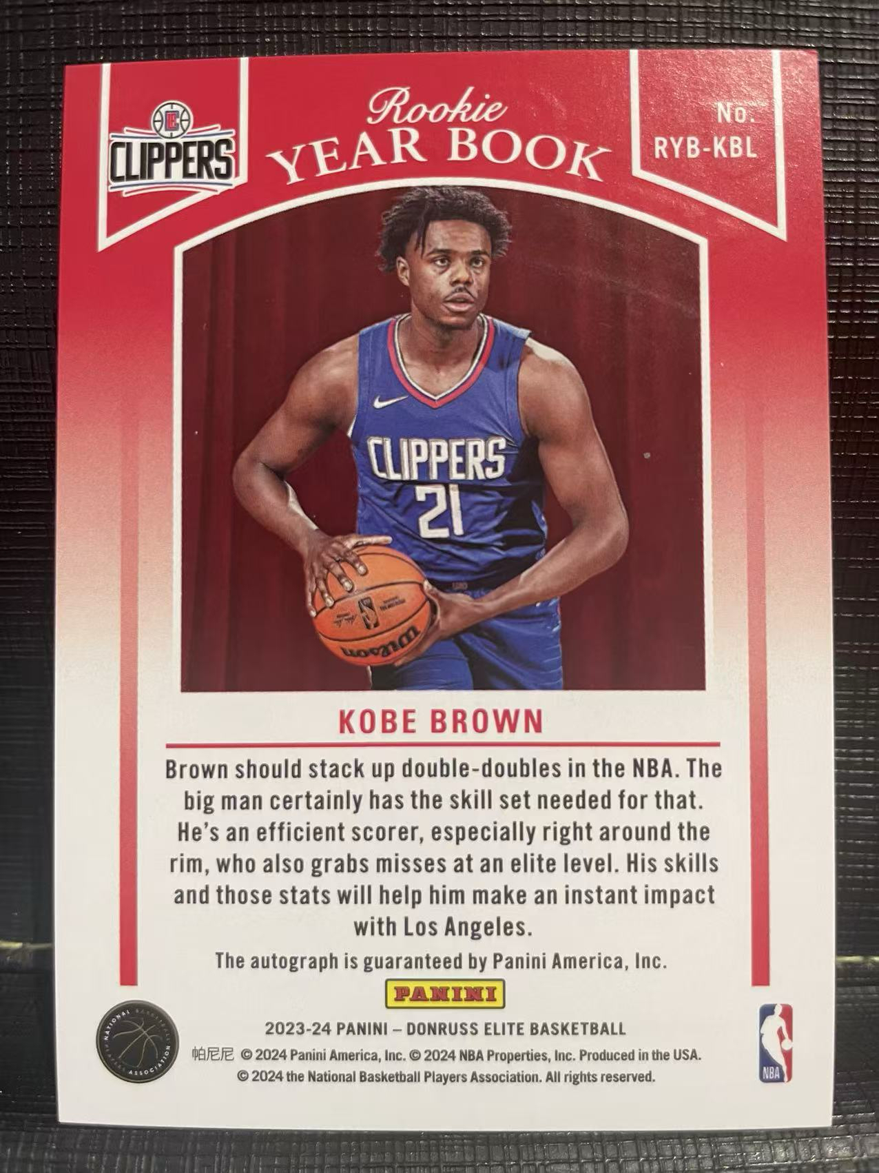 2023-24 Panini Donruss Kobe Brown RC 快船 科比 布朗 新秀!新秀年!签字 精英系列 浮雕特卡签字 适合投资 专收必备🌺一卡在手 以文会友🌺