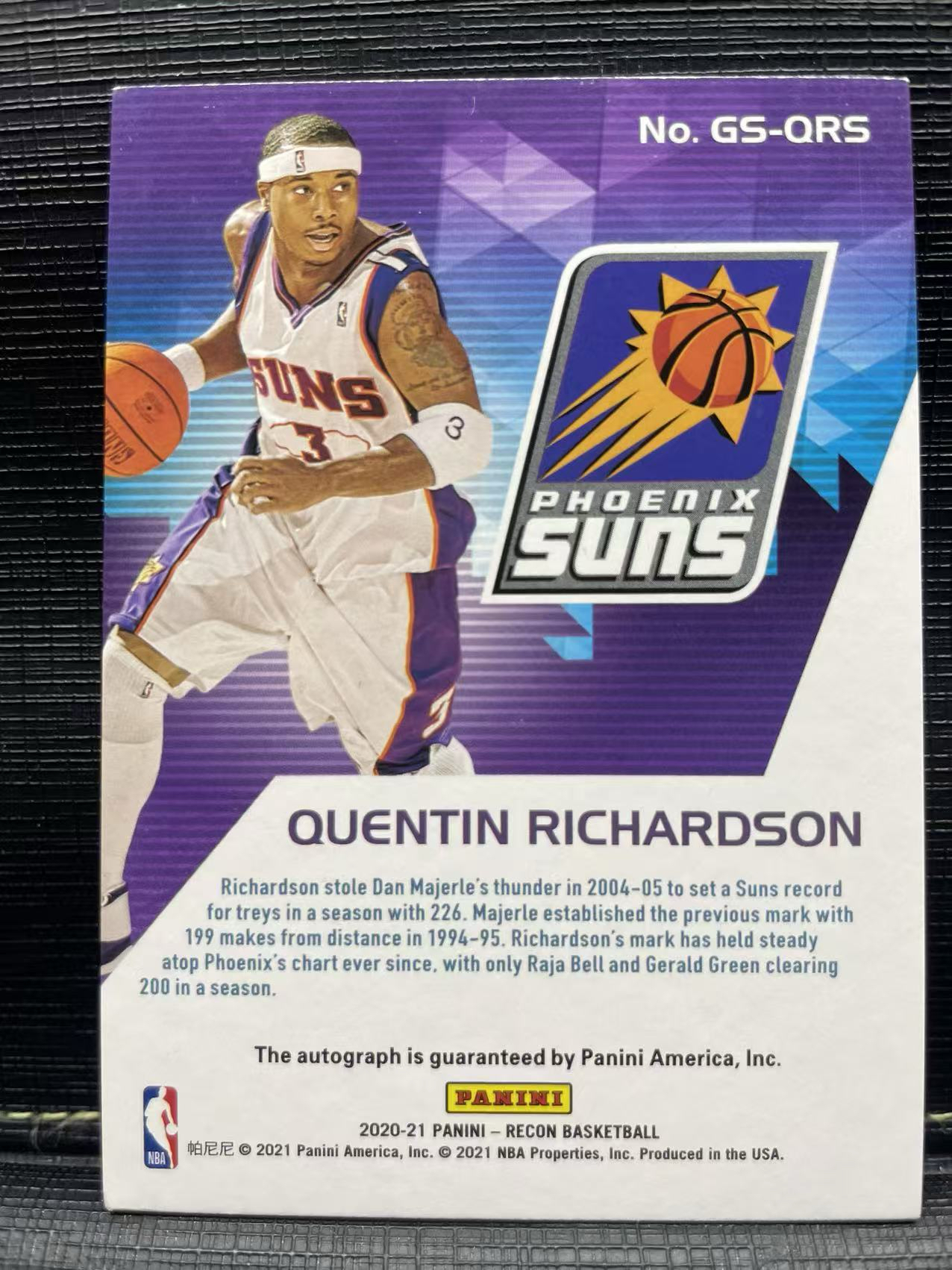 2020-21 Panini Recon Quentin Richardson 太阳 斗牛士 昆廷 理查德森 签字 49编!好人签字 专收必备 投资升值 抓紧抢购🌺一卡在手 以文会友🌺