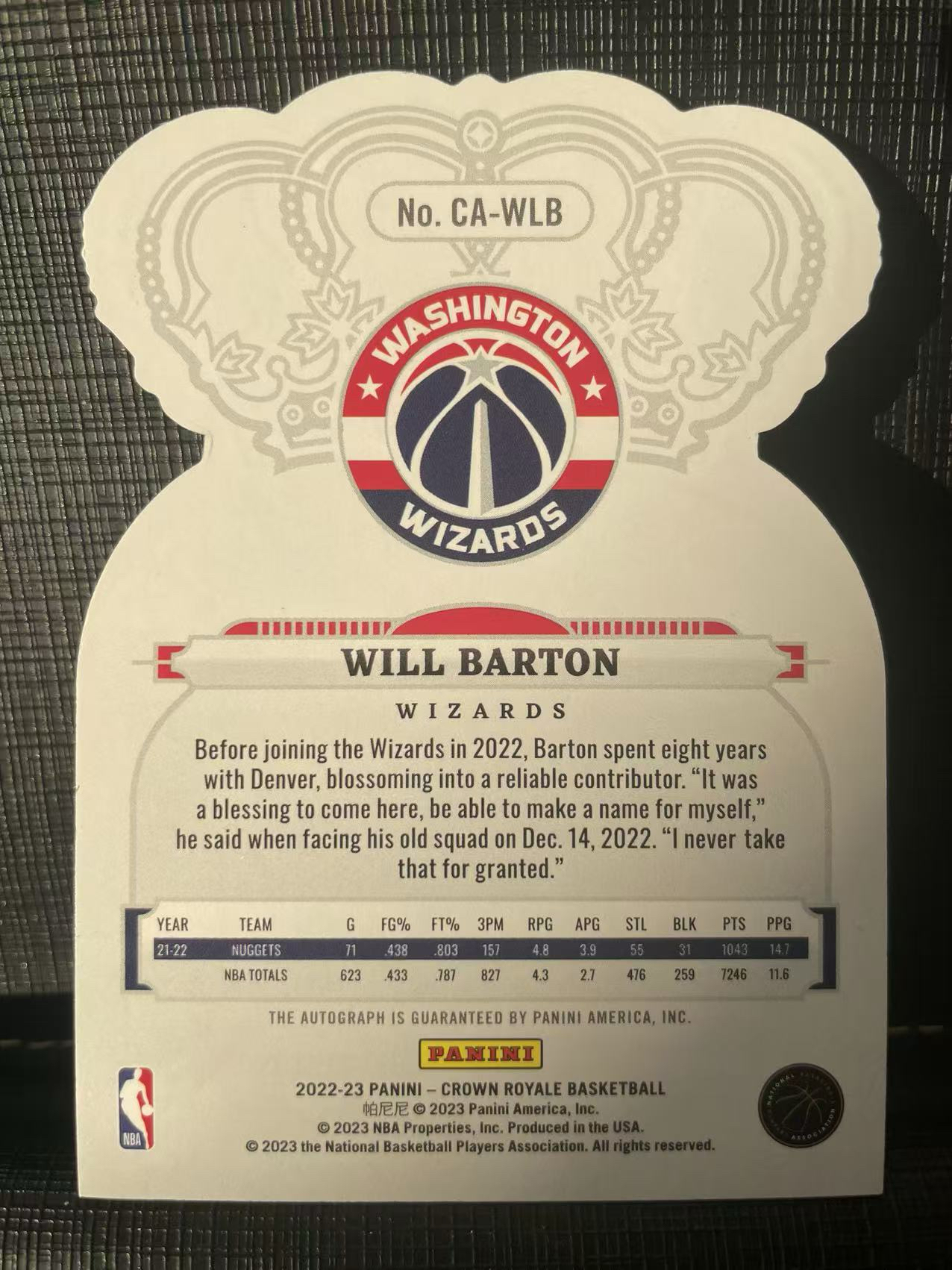 2022-23 Panini Crown Royale Will Barton 华盛顿奇才 威尔 巴顿 签字 75编!蓝折签字 皇冠系列 高端异形签字 专收必备🌺一卡在手 以文会友🌺