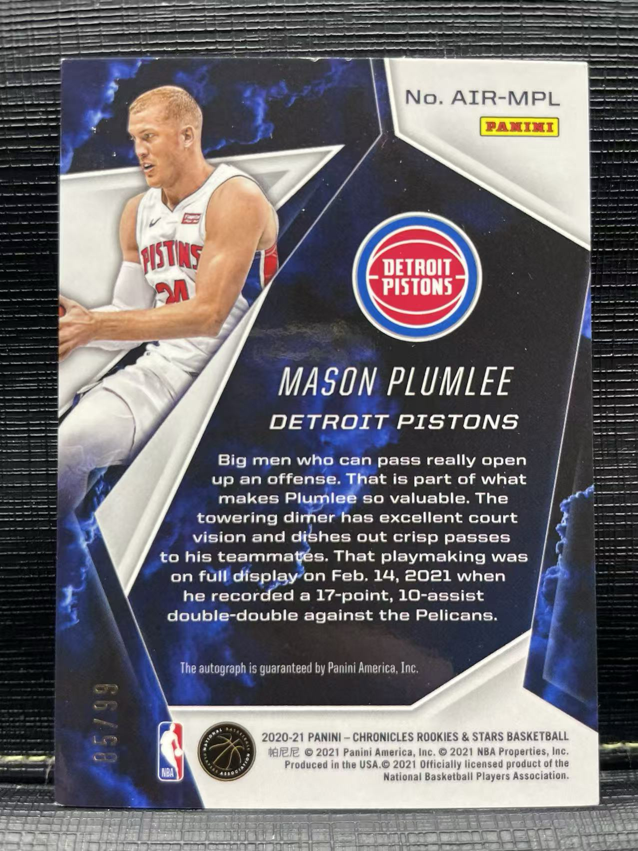 2020-21 Panini Americana Mason Plumlee 活塞 梅森 普拉姆利 签字 99编!好人签字 专收必备 投资升值 抓紧抢购🌺一卡在手 以文会友🌺