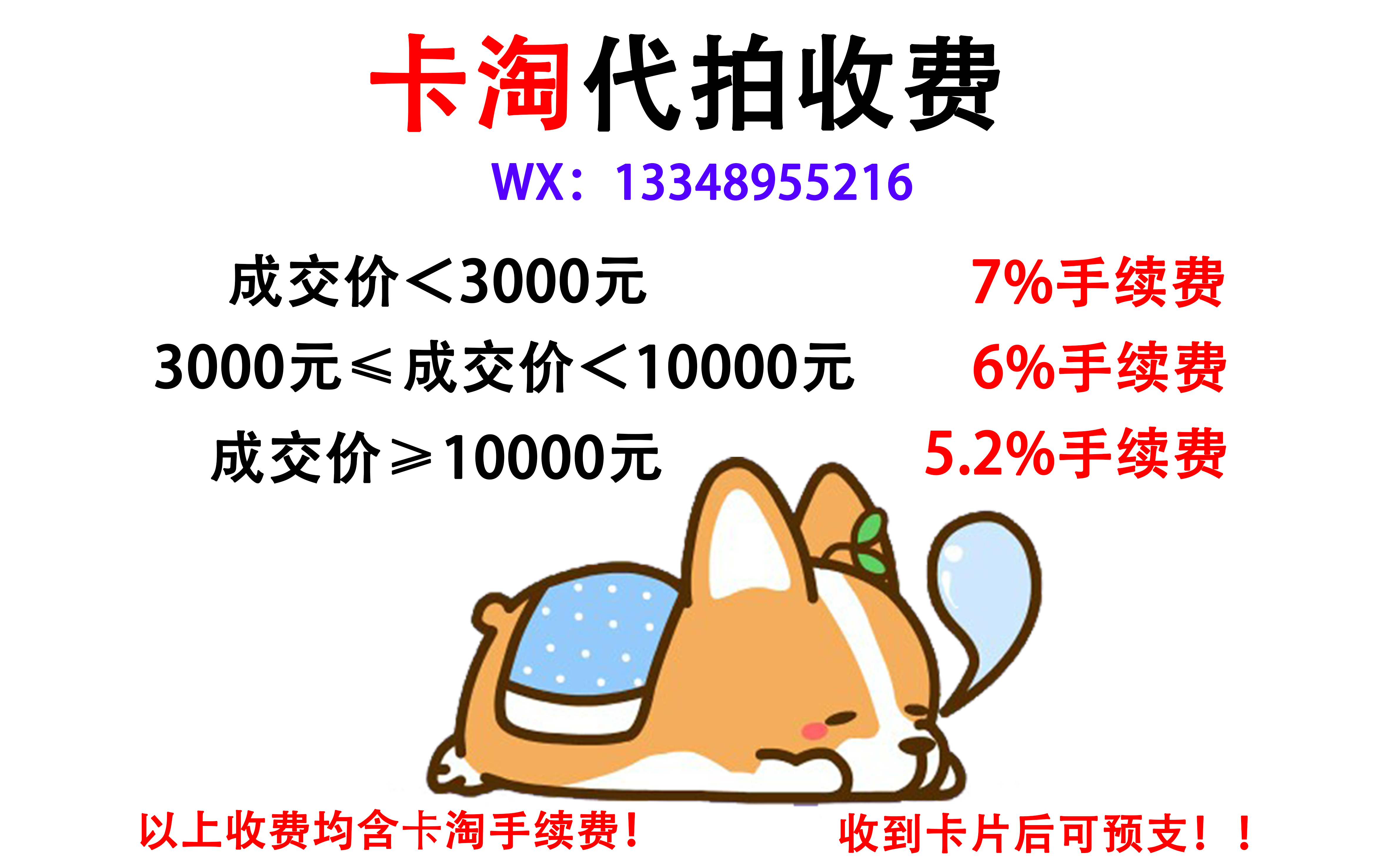 欢迎参加竞拍,联系方式:13348955216 【快递邮寄】拍品均不含卡具,均不包邮,偏远地区除外运费统一15元(默认圆通),可顺丰到付,快递一律不发国外。无特殊情况付款后5日内发货,发货地址如有变动请私聊站内信告知,如未告知按默认地址发货。【卡品品相】卡片均以图为准,没有特殊说明均为通行品,肉眼可见。拍卖卡片品相均为通行品,如有细微卡角、卡边磨白,卡面细小划痕等请买家通过实拍高清图片仔细观察,参与拍卖默认接受此卡品相,中标后卡片一经发出概不退换,如卡片存有严重品相问题会提前进行说明。本拍卖原则不提供累计服务,如需累计,烦请提供自提码。若需累计后续卡品问题不提供售后,累计导致的卡片漏发,买家需承担补发邮费,累计卡片如若有损或丢失本店概不负责还望理解。累计时间不得超过一个月(从最近一次购买开始算起,连续一个月未参与拍卖购卡),若累计一个月以上默认放弃累计!!【运输】如卡片在运输中出现损坏、丢失本店致予快递公司按规定索赔,其余金额本店不予承担,价值较高的卡片推荐选择顺丰到付。 【送拍】本拍卖行提供代拍业务!!卡片收到后即可提供预支!!成交价3000以内收取手续费7%(包含卡淘5%);成交价3000以上收取手续费6%;成交价10000以上收取手续费5.2%!!! 【PSA送评】本拍卖行提供PSA送评业务!单评150元一张!!双评200元一张!!周期为4-5个月!! 感谢您的理解与关注!祝您玩卡天天起飞!拍卡天天捡漏!拆卡盒盒一编!