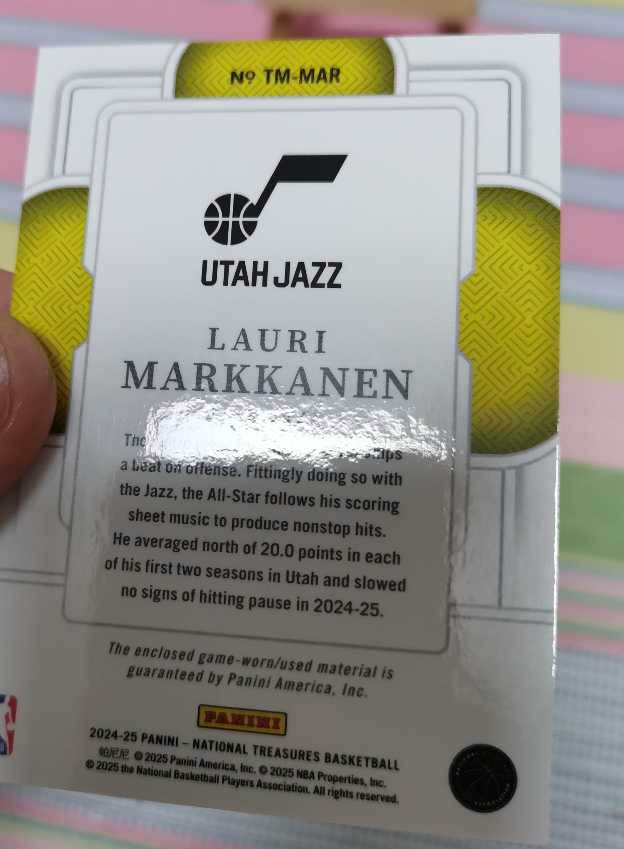 2024-25 Panini National Treasures Lauri Markkanen 国宝系列 爵士 劳里 马尔卡宁 20/99编 单窗落场物料切割 送卡砖