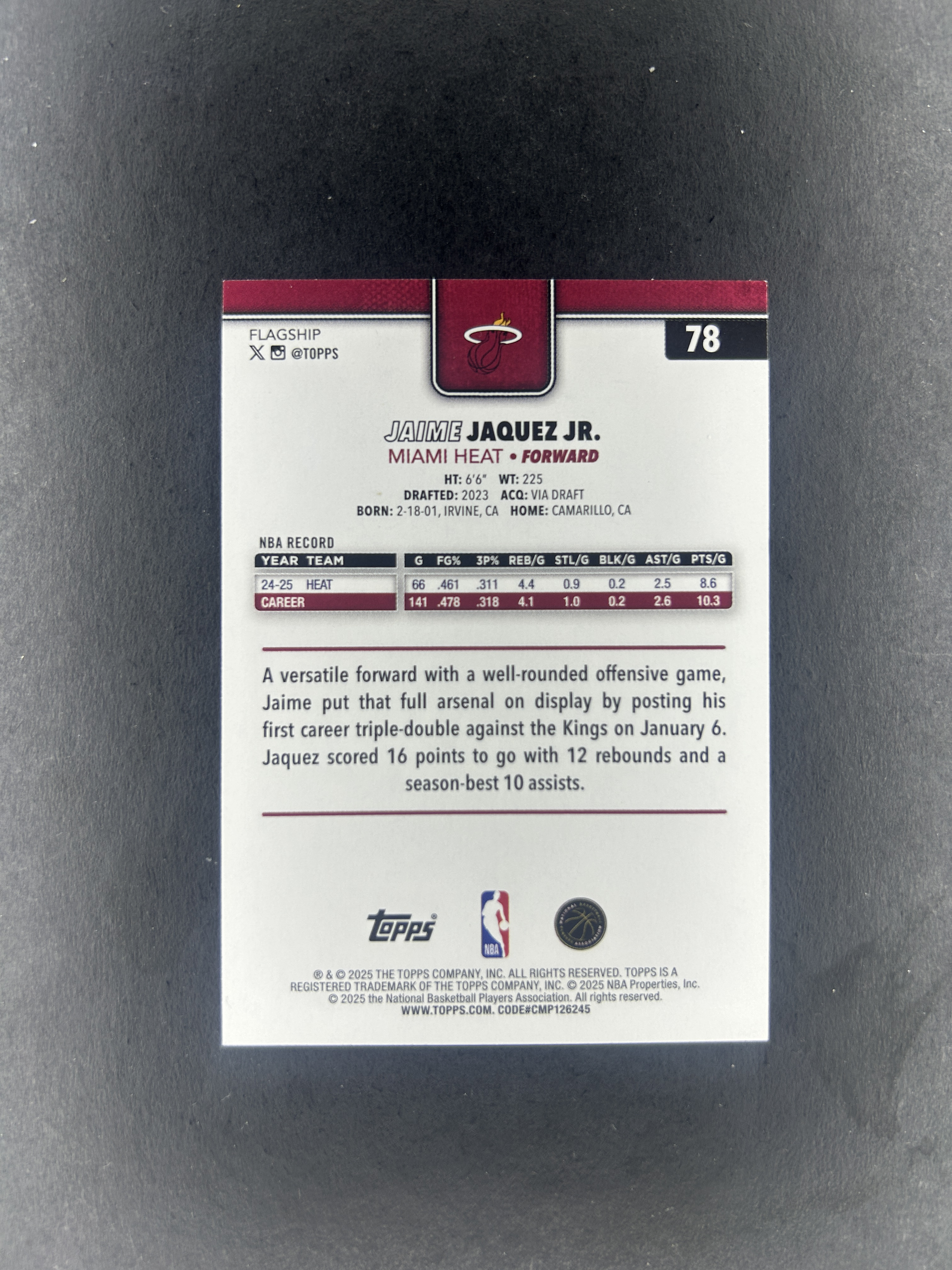 2025-26 Topps Flagships Jaime Jaquez Jr. 【千禧王代卖】小海梅 哈克斯 热火 折射 球队折 队标 大比例 ssp 全村淘虾