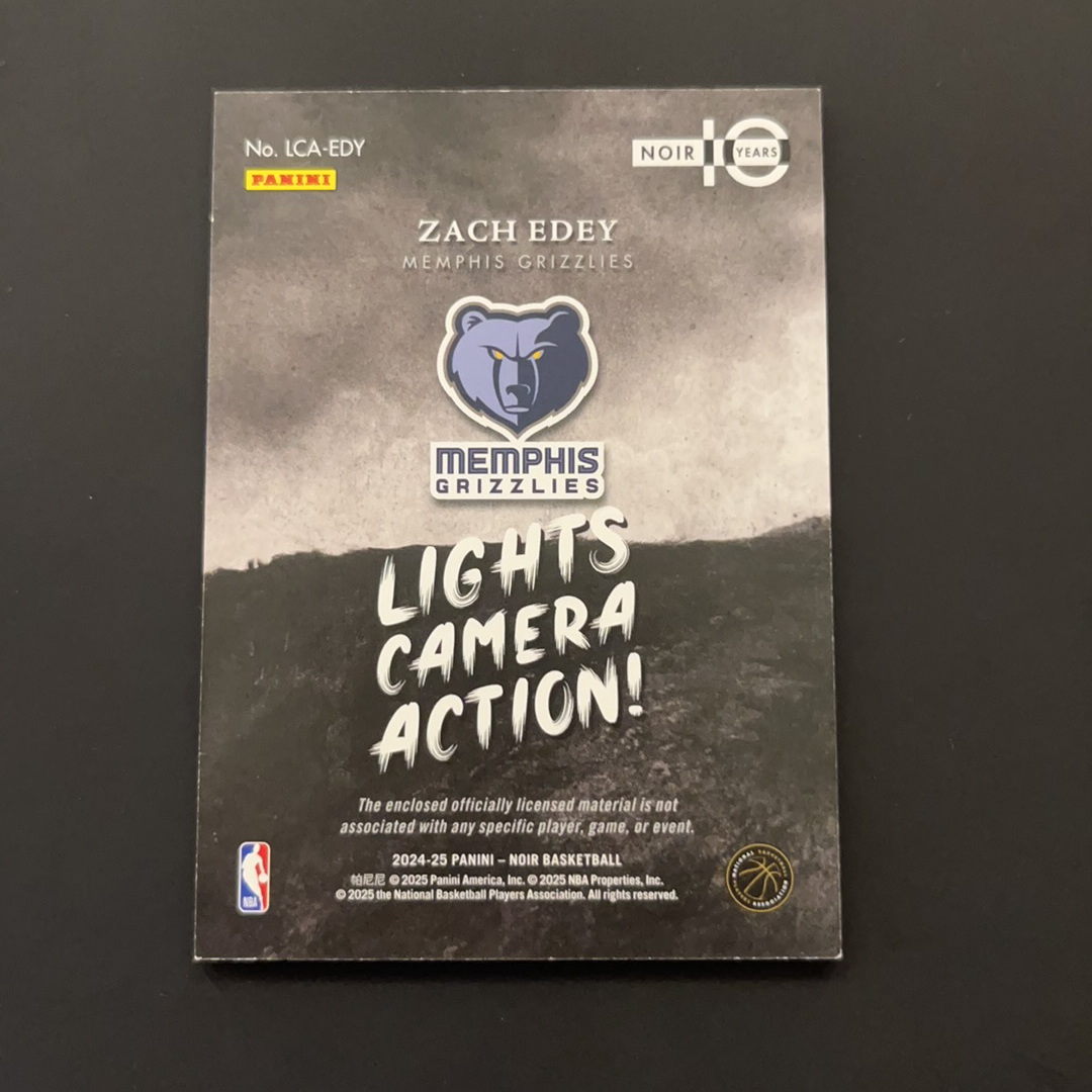 2024-25 Panini Noir Zach Edey RC 诺尔 灰熊队 扎克 伊迪 周志豪 RC新秀 小窗物料 patch 1/15编 首编 卡品如图