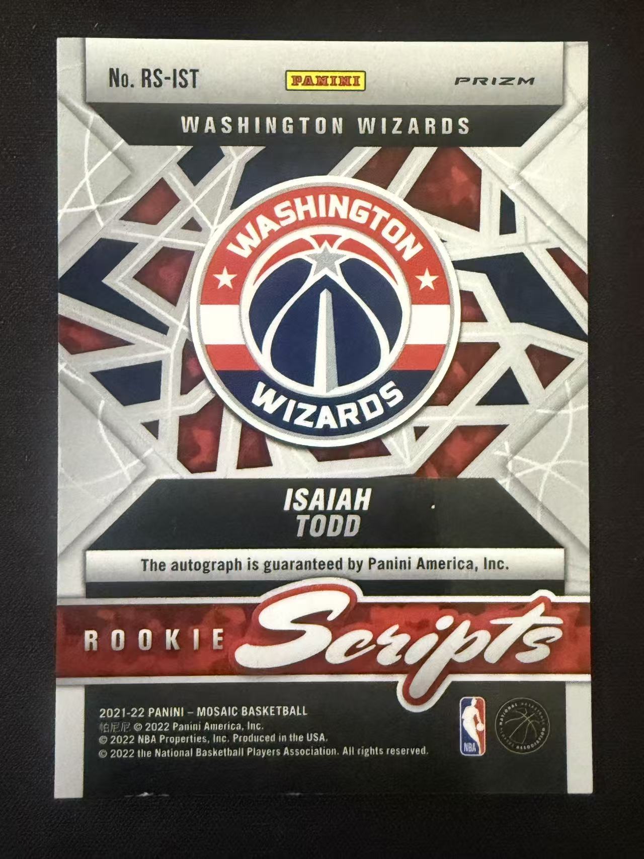 2021-22 Panini Mosaic Isaiah Todd RC 【大锦拍卖】奇才 以赛亚 托德 马赛克 新秀 RC 折射 签字 贴签 卡品如图(星球)