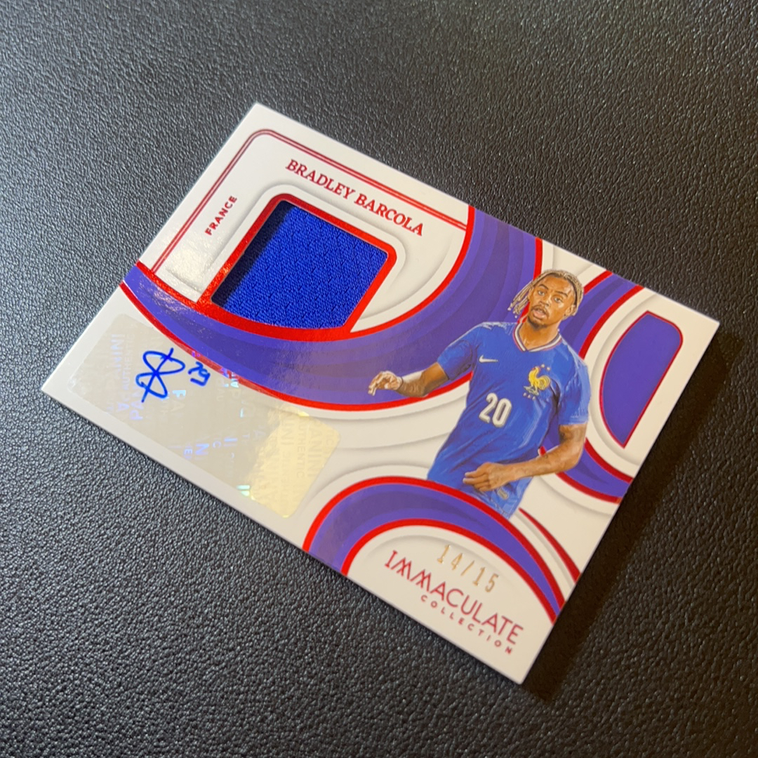 2024-25 Panini Immaculate Bradley Barcola 爱咪咪 法国 大巴黎 巴尔科拉 球衣 物料 签字 14/15编 低编 收藏必备 轻印-SY8901